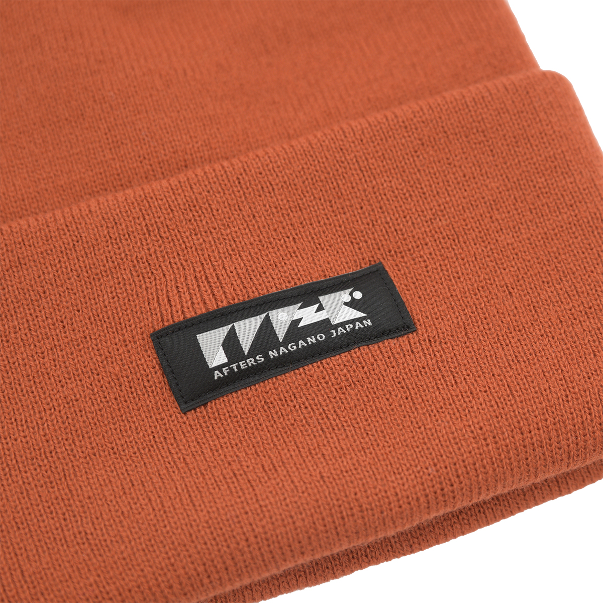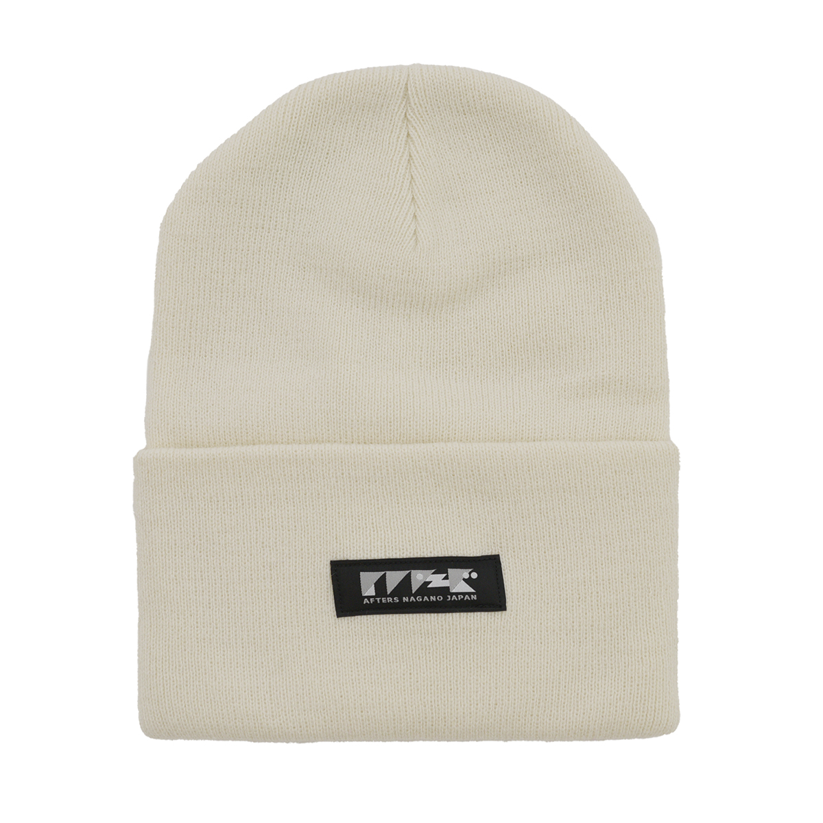 しっかりとした厚みのあるアクリル素材のビーニー。フロントにAFTERSネーム。