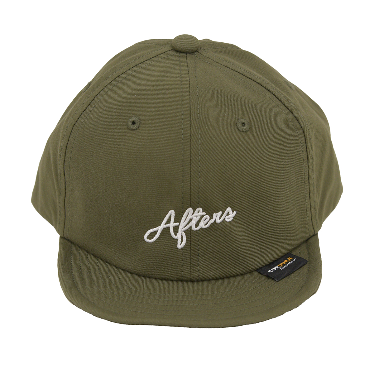 コーデュラ社製コットンナイロンクロスを使用したアンパイアキャップ。ツバにワイヤー入りで動きを出すことが可能です。フロントにAFTERS®︎の筆記体刺繍。