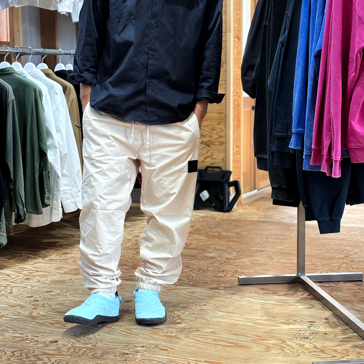 今日はパンツのご紹介。現在昨日ご紹介のHINOKIシリーズに加え、昨年からの流れは途切れずちょっとスポーティーなパンツの人気は続いていますね。
