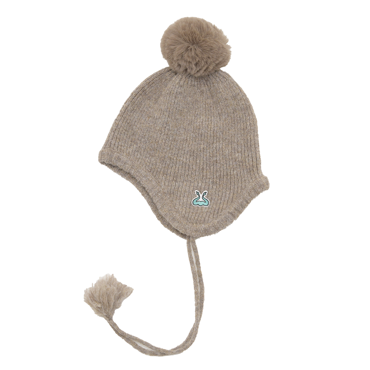 ボンボンとサイドの紐が特徴的なパイロットニットキャップワッチ。耳当てが付いて防寒性も兼ね備えたアイテムです。