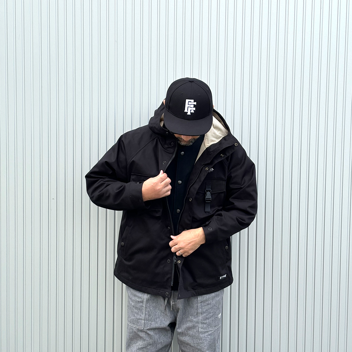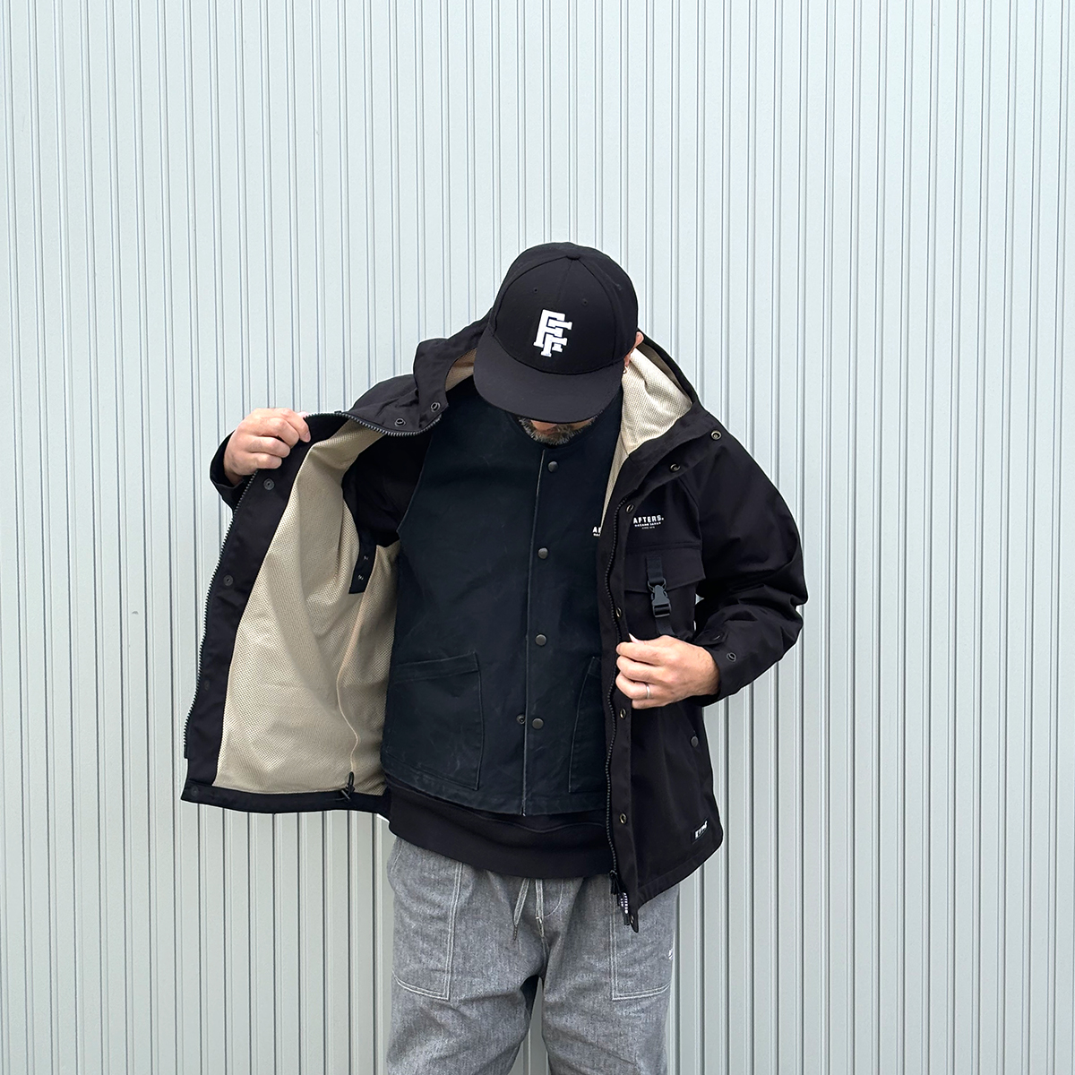さて、AFTERS®︎のSATOYAMA JACKETです。現在在庫はMサイズのみとなりますが、インナーにフリースやベストなどを着れるような使用にしているため、大きめな作りです。SATOAYAMA VESTに重ねてみましたが相性も抜群、そして防寒性もバッチリです。