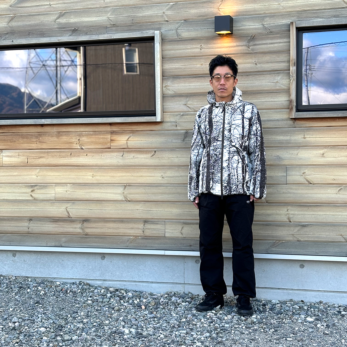 SHIRAKABA JACKETとHINOKI PANTSに真っ黒VANSという確変レベルの着こなしで登場してくださいましたのでパチリさせていただきました。