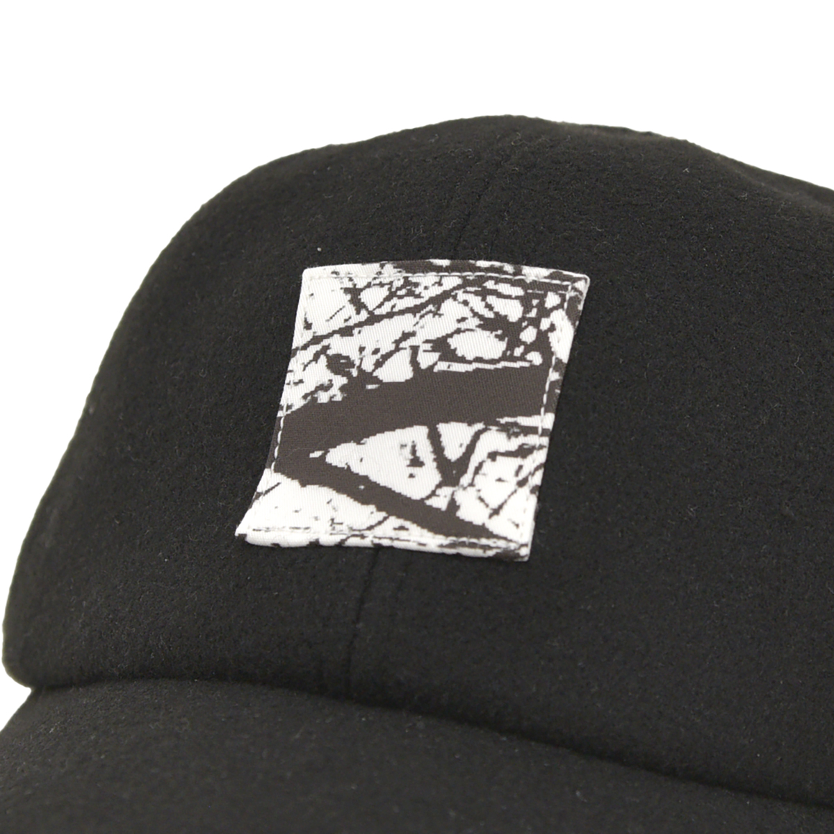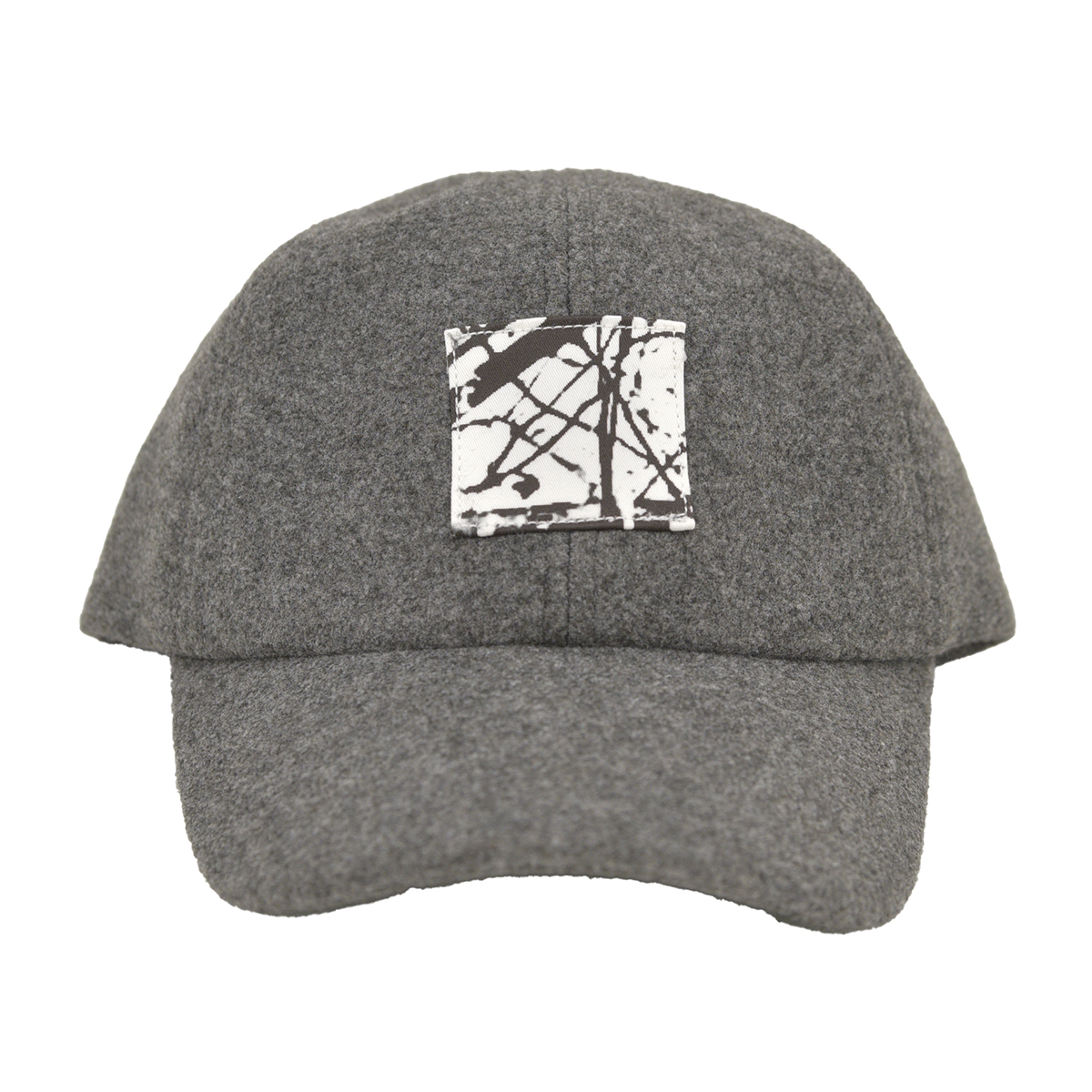 ウール調の6パネルキャップ。フロントにコットンストレッチツイル素材のオリジナルテキスタイルを使用。リアルツリーカモ柄はランダムになりますので、全て1点物のデザインとなります。