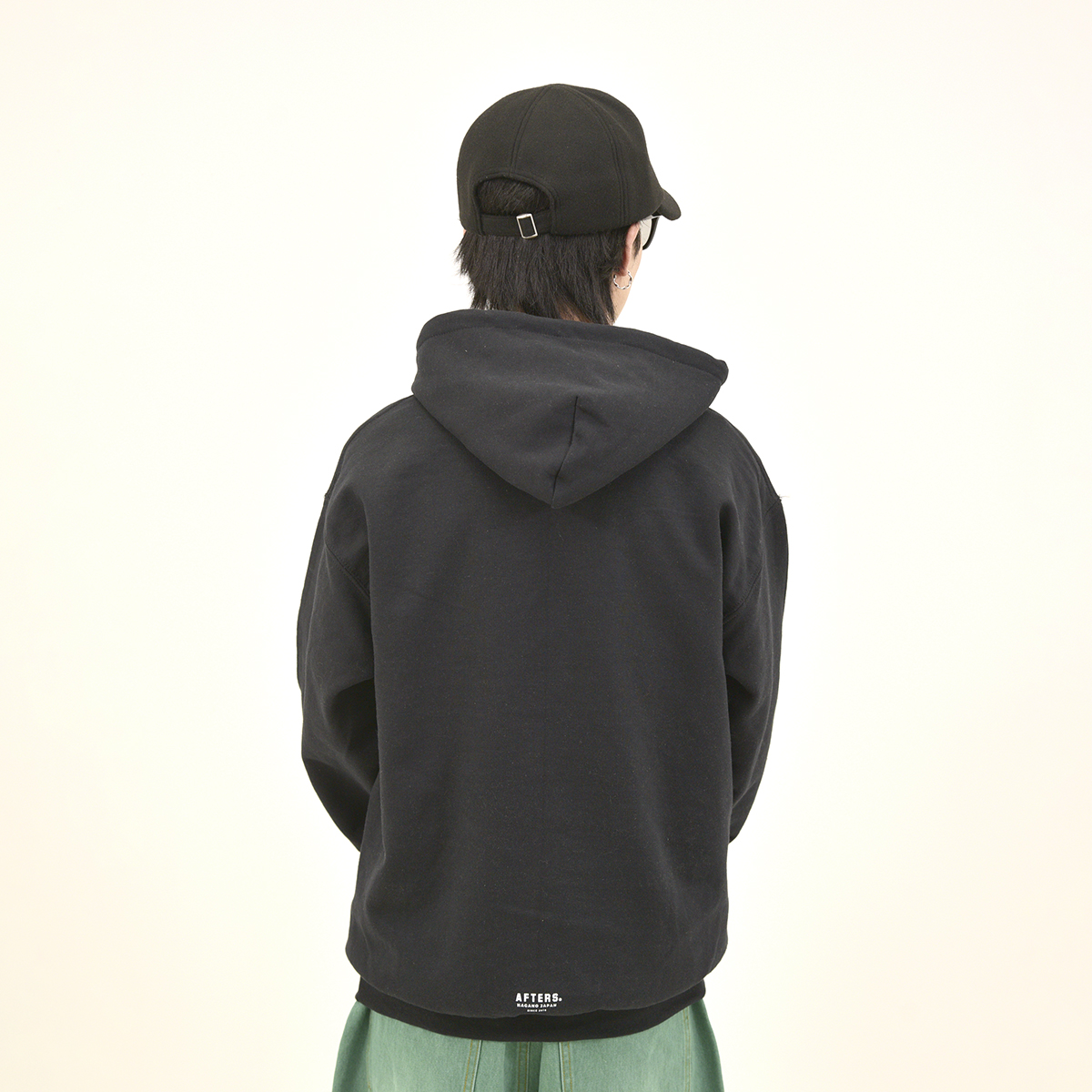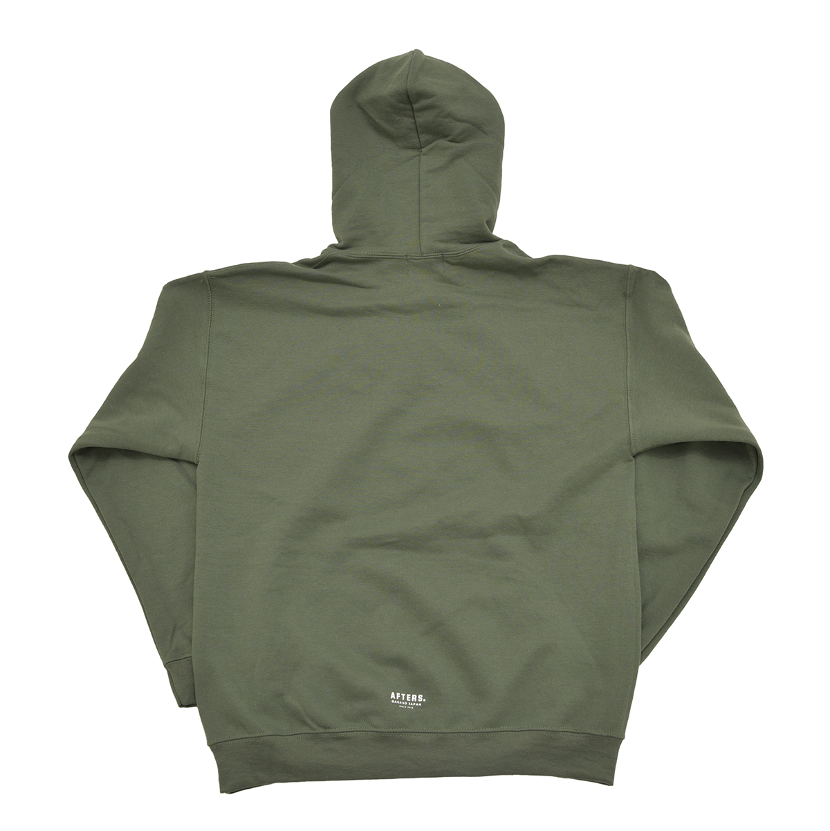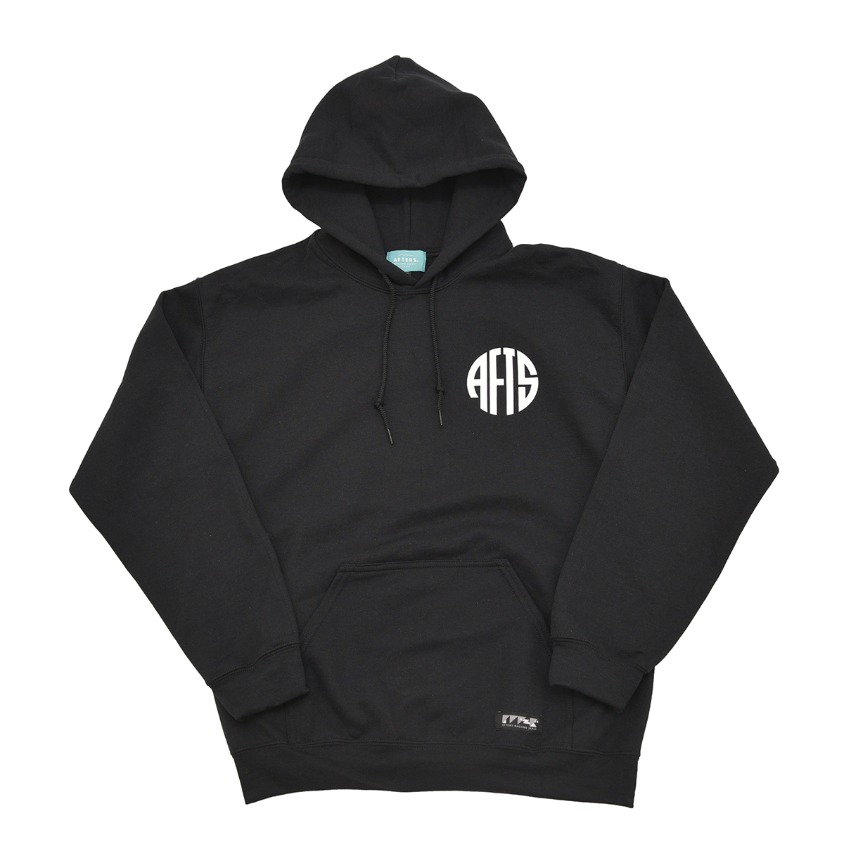 8オンスの裏起毛フーディー。フロントとバックにシルクスクリーンプリント。AFTERS®︎ネーム。