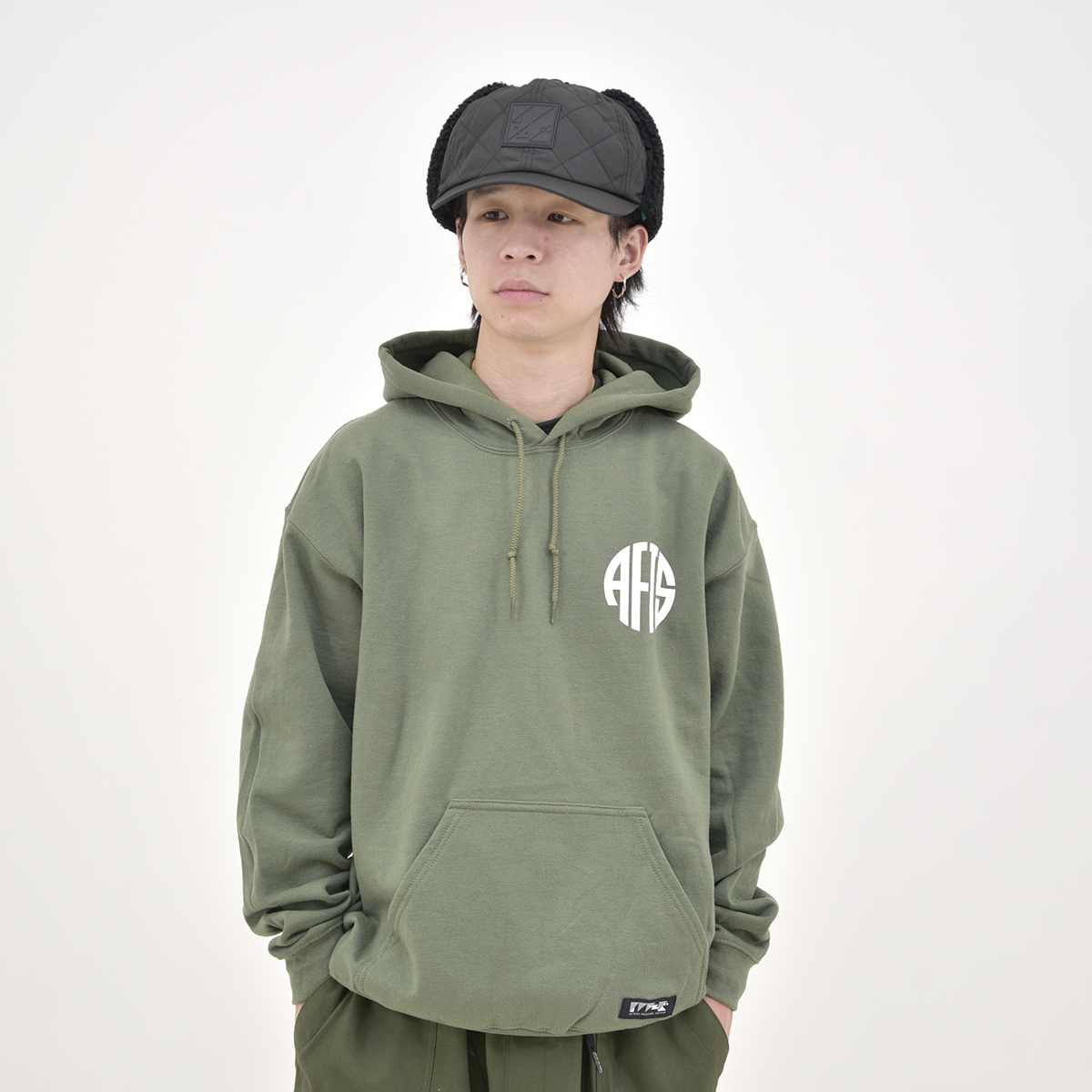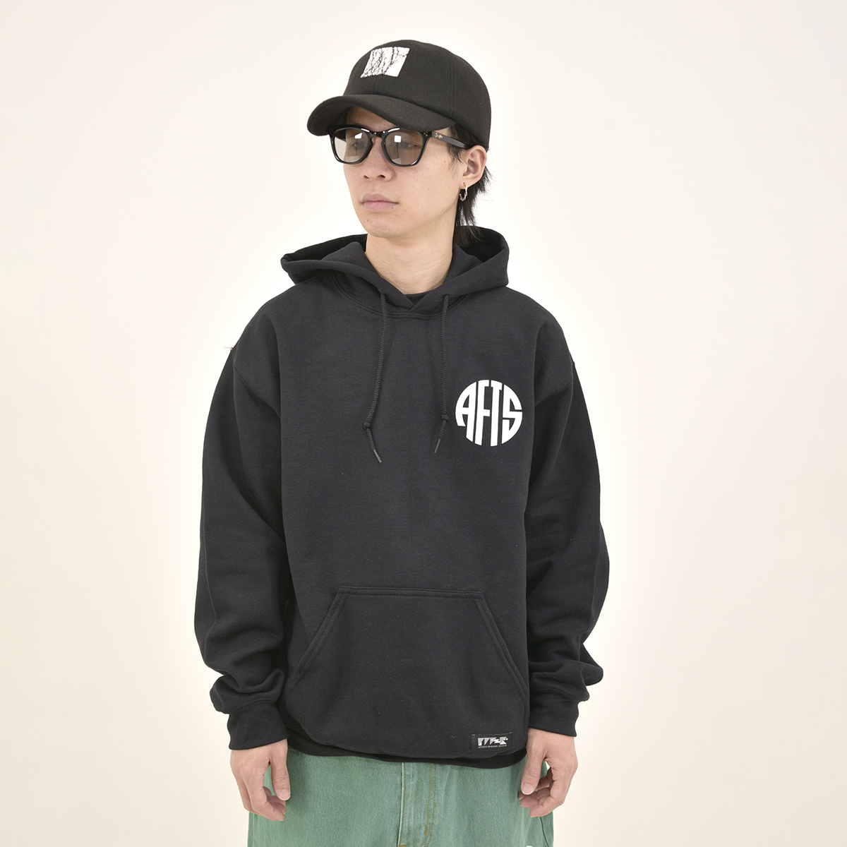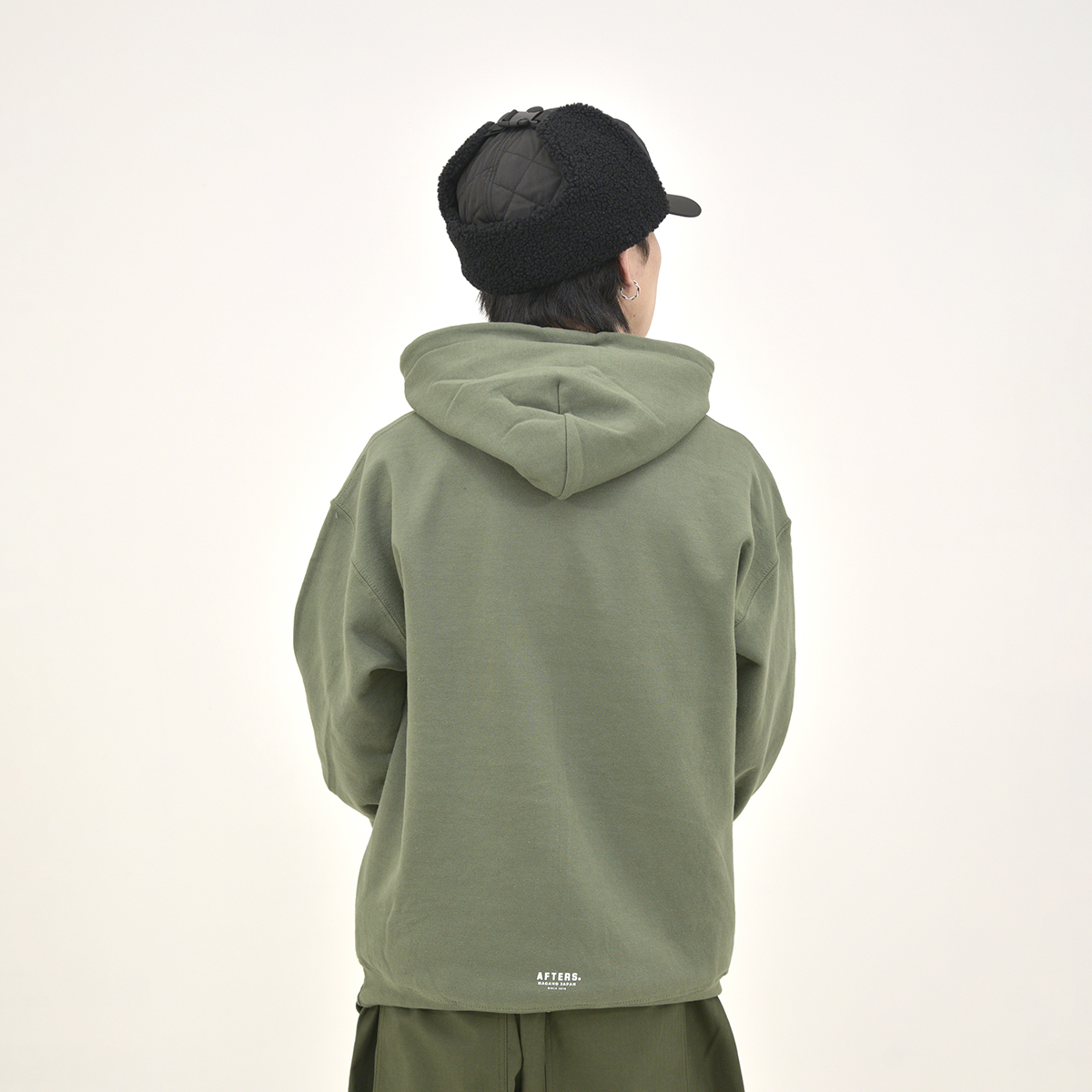8オンスの裏起毛フーディー。フロントとバックにシルクスクリーンプリント。AFTERS®︎ネーム。