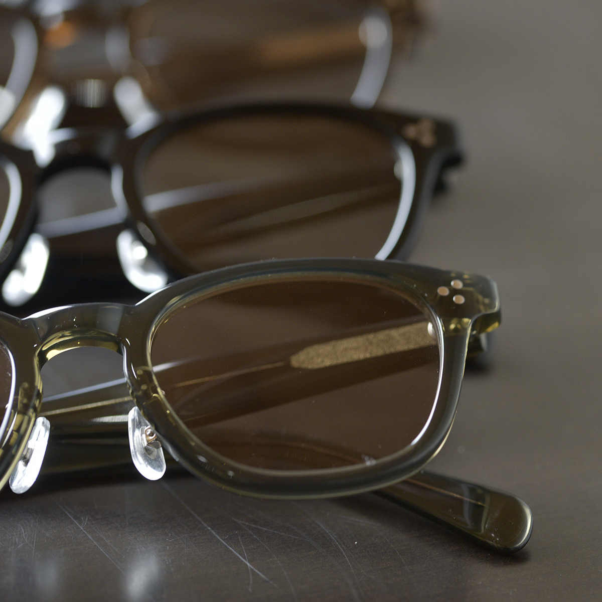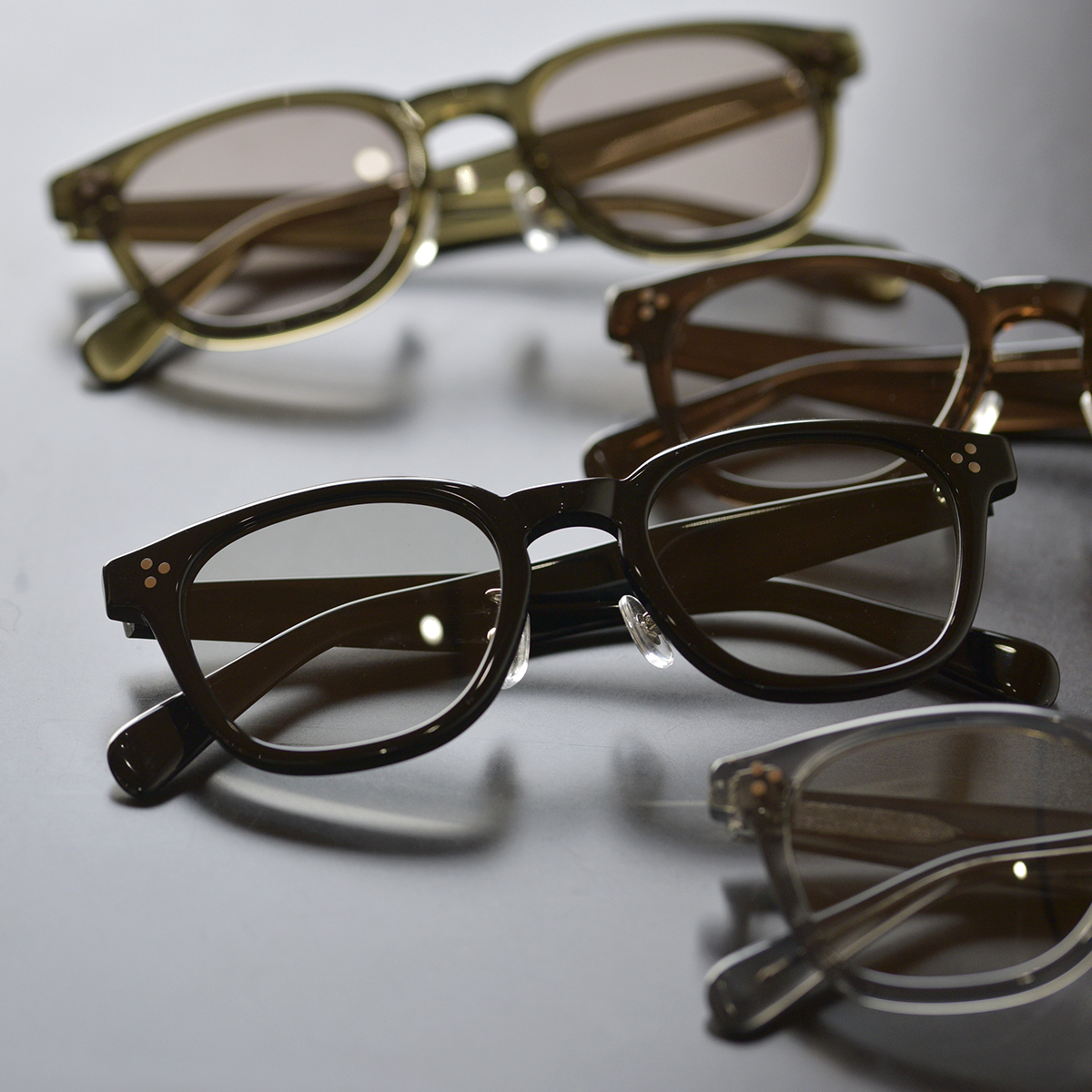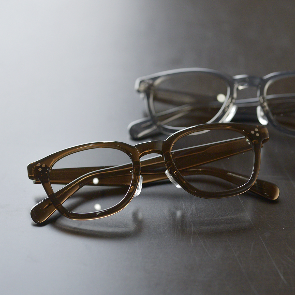 カラーは全部で4色。BLACK以外の3色(BROWN,GRAY,KHAKI)はクリアフレームとなってます。僕が普段かけているAFTERS EYEWEARのモデルはBASIEではありませんが、様々な服装に合わせやすいようにBLACKをかけてます。中にはBLACKだとアイウェアの印象が強過ぎるかなと感じてしまう方が中にはいらっしゃると思います。そういった方はクリアフレームがオススメです。