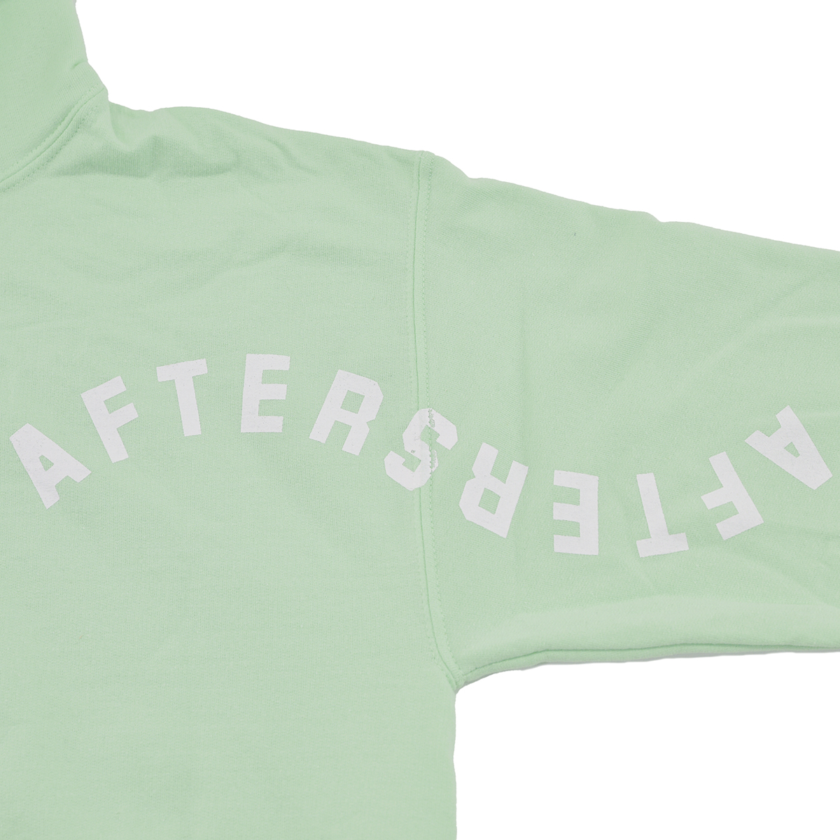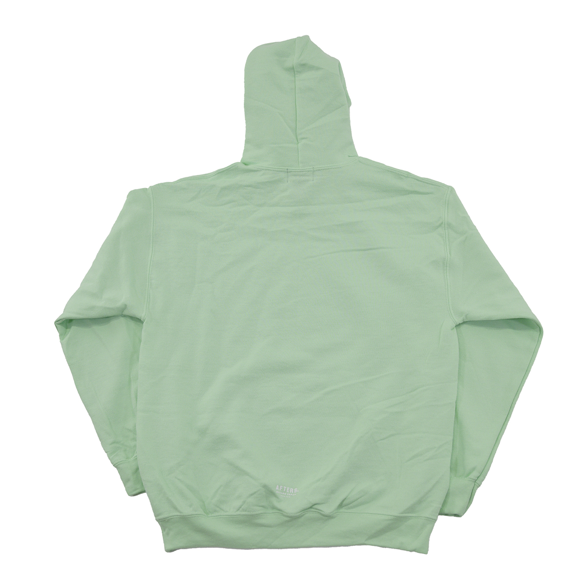 8オンスの裏起毛フーディー。フロントとバックにシルクスクリーンプリント。AFTERS®︎ネーム。