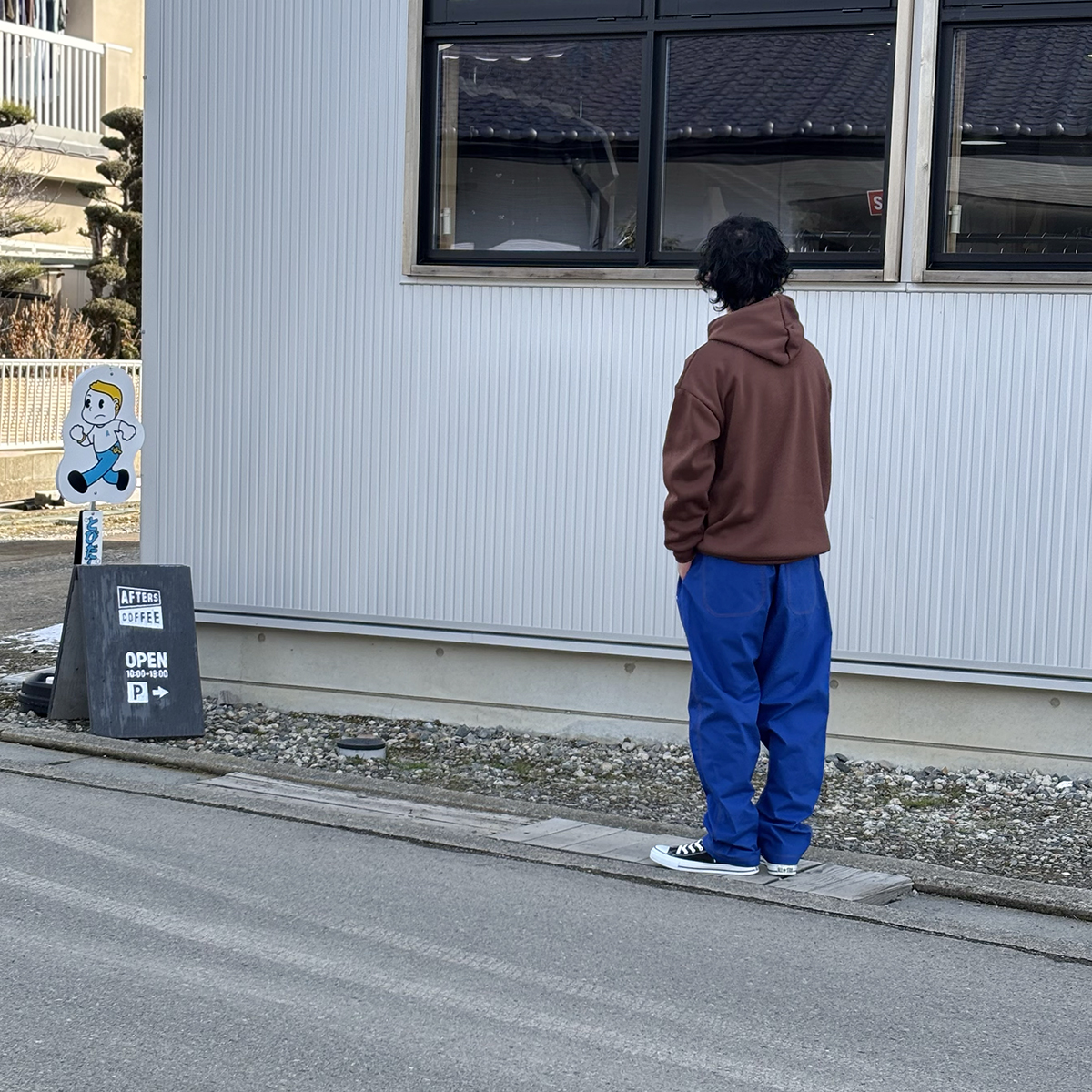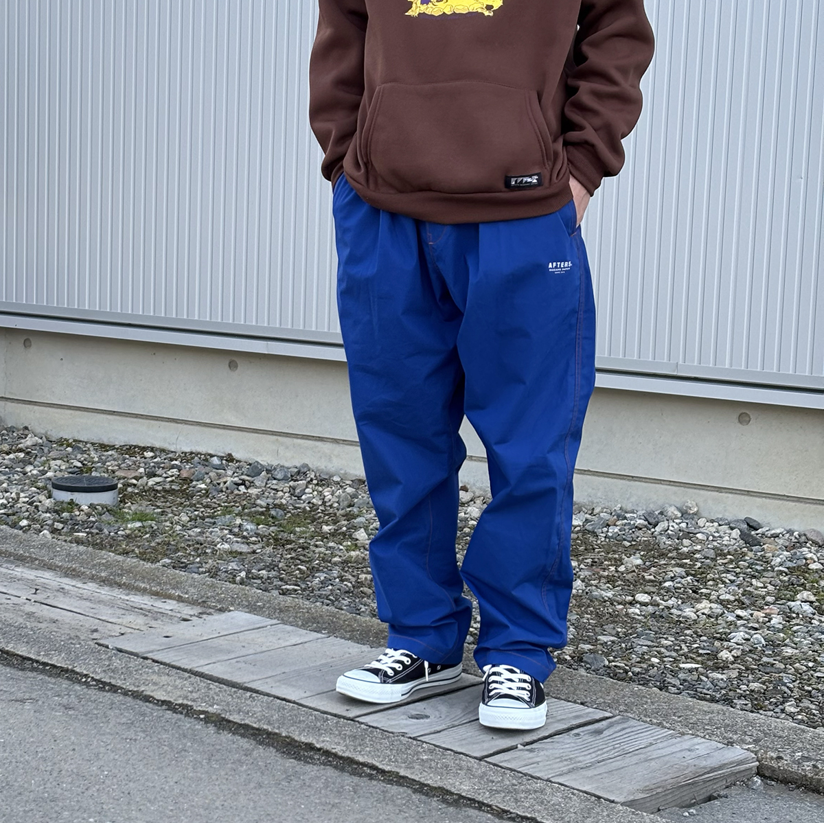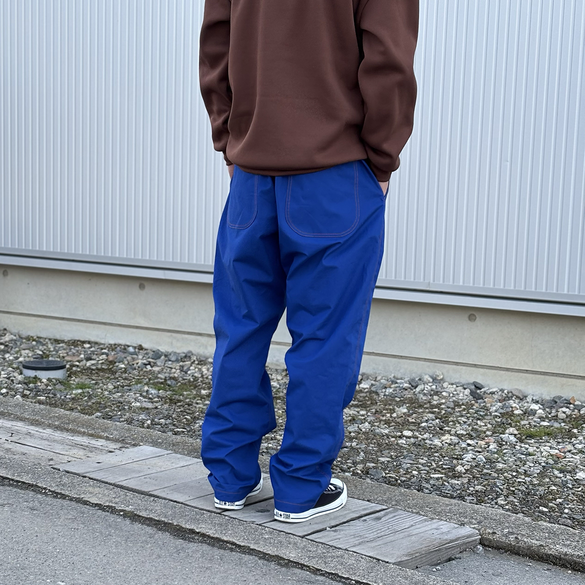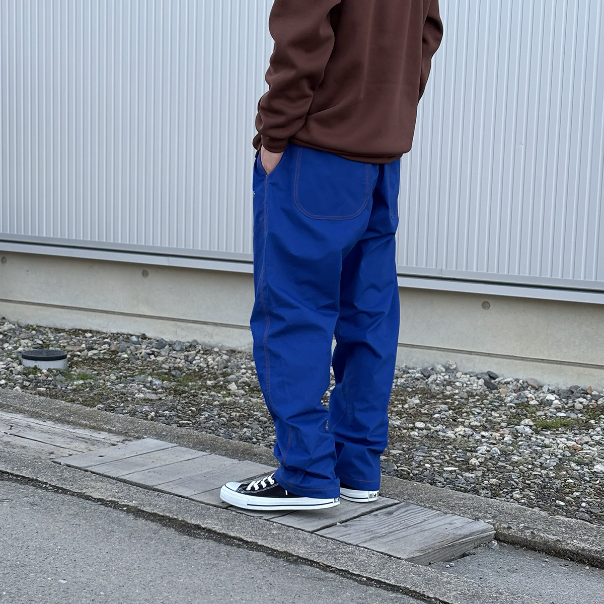 HINOKI EASY PANTSのROYALは単体で見ると少し派手かなぁと感じるのですが、実際穿いてみるとすんなりハマってくれます。