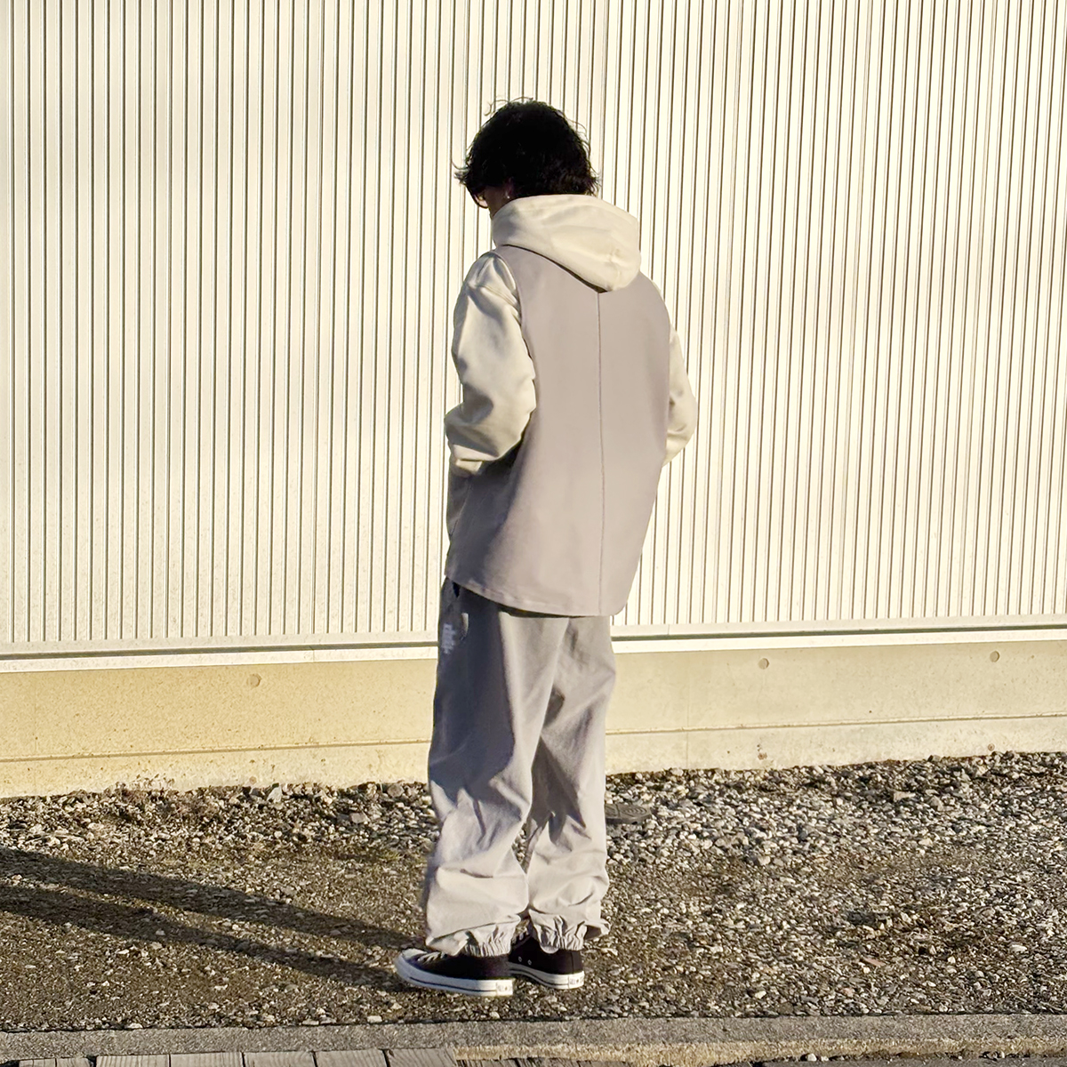 タイトルの通り、グレーをメインに使ったスタイリングです。最初パンツはブラックを穿いていたのですが、僕的には普通すぎてしっくりこなかったのですが、トレーニングパンツのグレーに変えたらお!これだ!となりました。ほぼ毎日見てるアイテム達なのですが、これとこれ合わせたらカッコ良いじゃないかなとか不意に降りてきたりしたりするのでファッションって面白いな〜と思います。