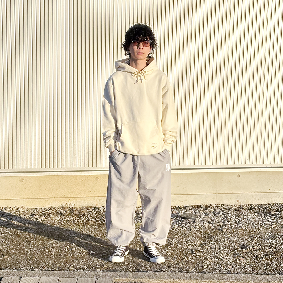 インナーに着用したのはOmochi×青坊主-aobouzu-×AFTERS / MY LOVE HOODIE。