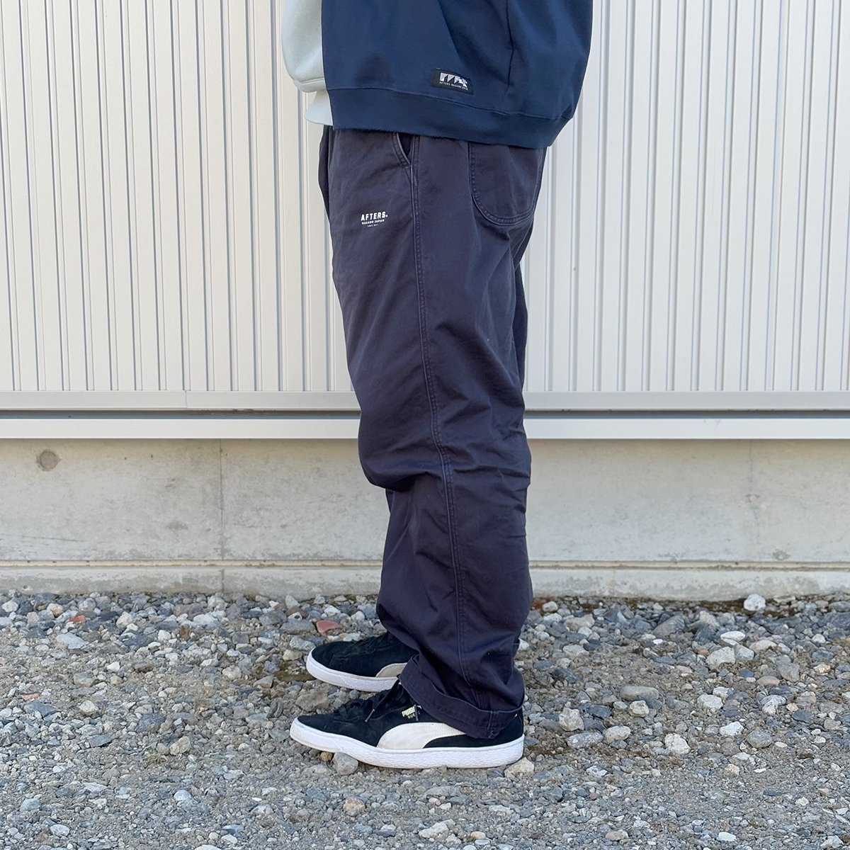 CAPはいつぞや嫁にもらったもの。サングラスはいつものPAAK。パーカーはAFTERS®︎のMIZUHIKI Ⅱ HOODIE。パンツは穿き込んでいるAFTERS®︎ HINOKI EASY PANTSのNAVYです。