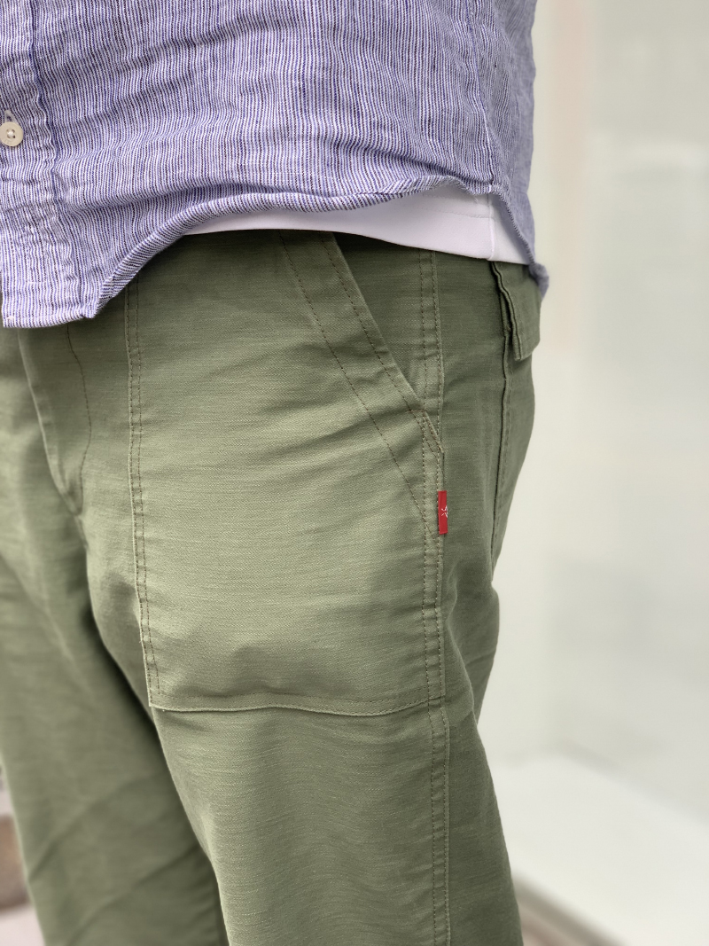 古着のミリタリーパンツも元々は同じような生地を使っているので、僕らもこのパンツを長年穿いてこうなって欲しい!というヴィジョンはあったものの、2年を待たずしてここまで仕上げてくれるとは。おそらく僕らスタッフよりもめっちゃ沢山穿いていただいてます。こういう瞬間が何よりも嬉しいですね。作って良かったな〜!と本当に思います。