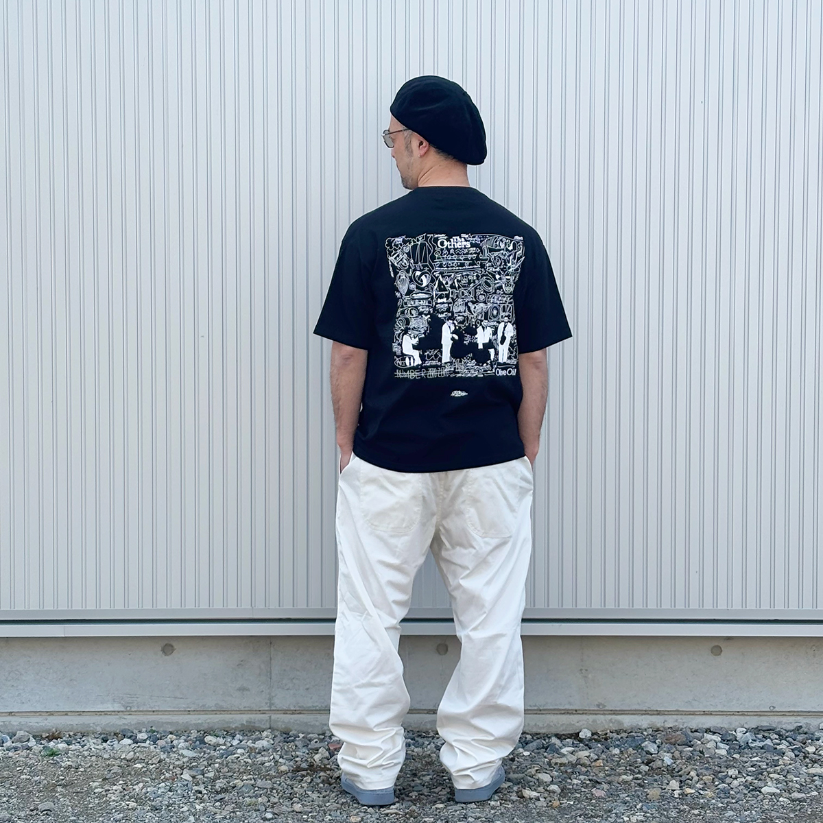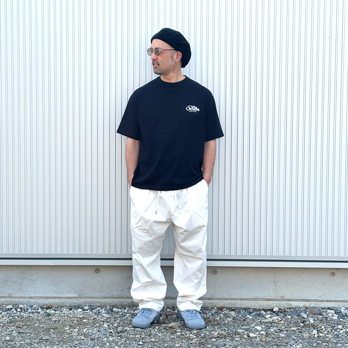 OILWORKSのTシャツにHINOKI IVORY。モノトーンで良い雰囲気で合わせられるのではないでしょうか。