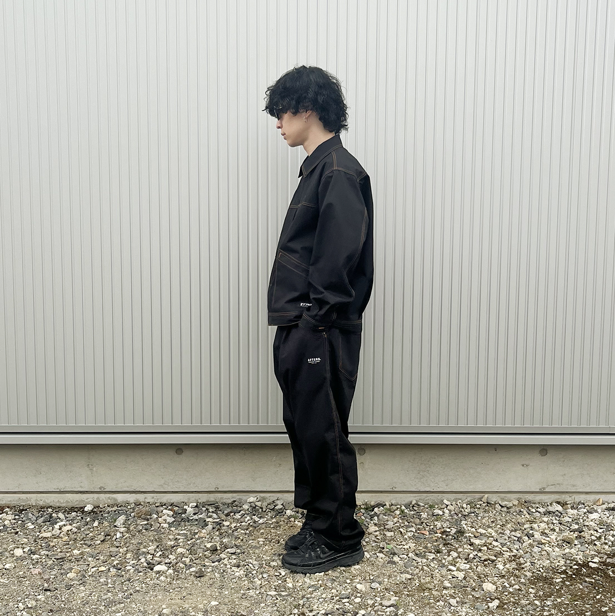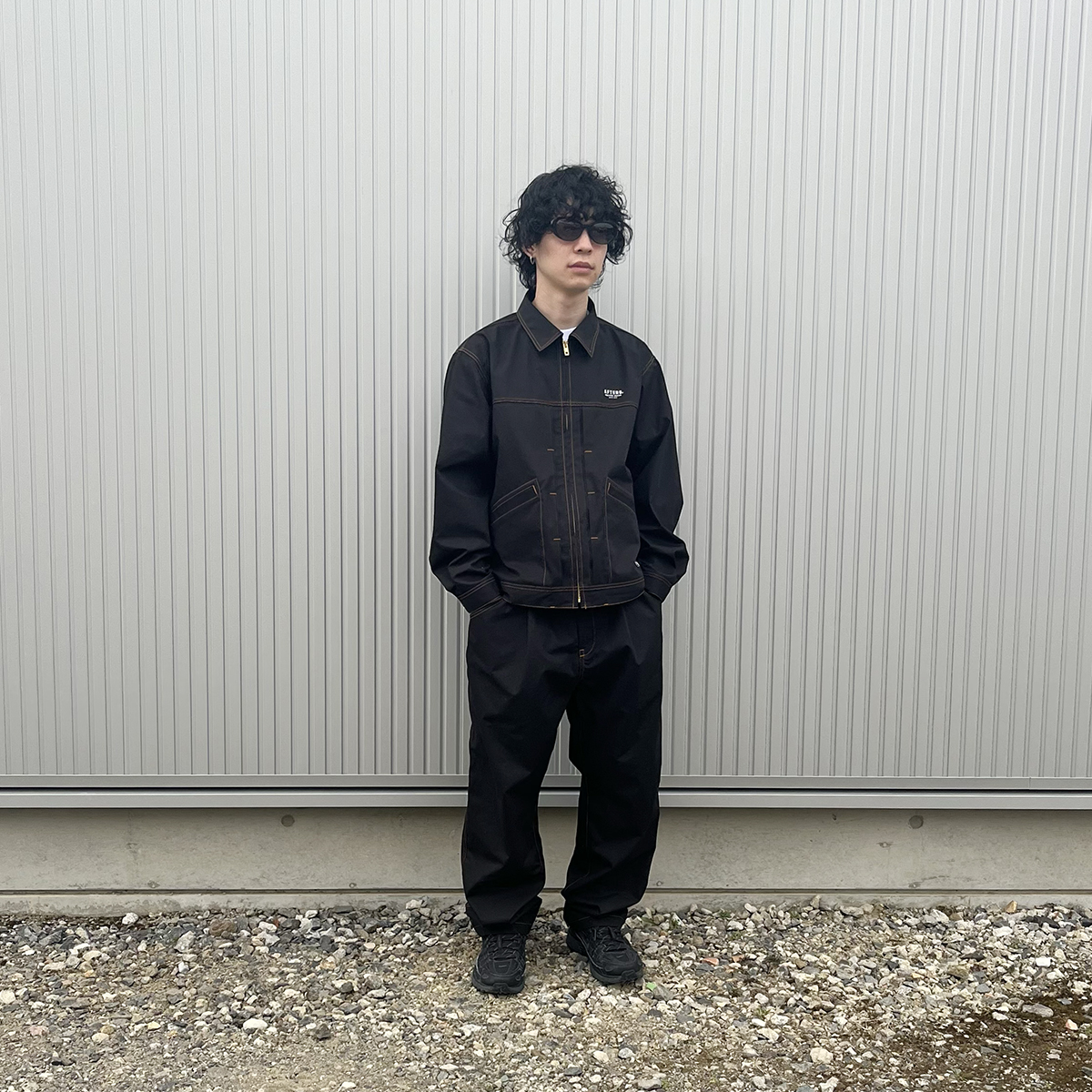 ジャケットのジップを閉めると上品な着こなしが出来つつ、どこか武骨な雰囲気がありますね。僕はこれに新作のAFTERS EYEWEARのCARTERを合わせてモードな感じに。今週も新作など多数アイテムご用意しましたので週末は是非お待ちしております!