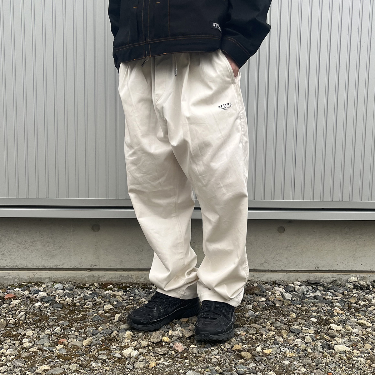 今週から気温も暖かくなるみたいで、Tシャツの上にHINOKI JACKETを羽織るのがちょうど良いと思います。合わせたのはHINOKI EASY PANTSのファーストモデル。AFTERSをいつもご利用してくださるお客様の中には既にお持ちの方多いのじゃないでしょうか。同素材のHINOKI EASY PANTS Ⅲとセットアップの着用もおすすめですが、あえてセットアップにせずお持ちのHINOKI EASY PANTSと合わせてもいいと僕は思います!