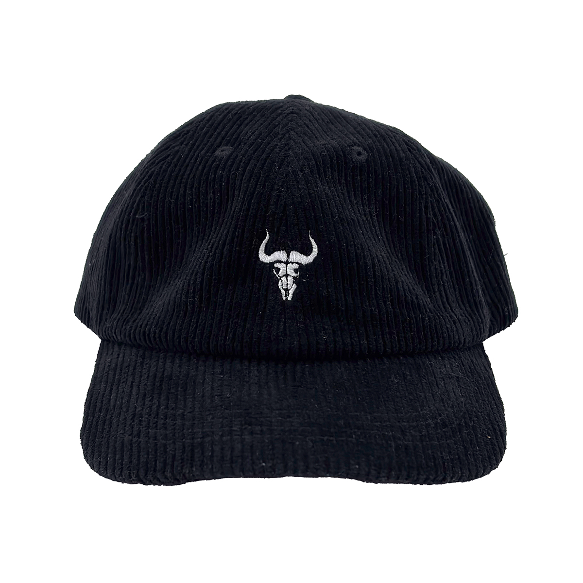 コーデュロイ6パネルキャップ。やや広めのフラットバイザータイプです。