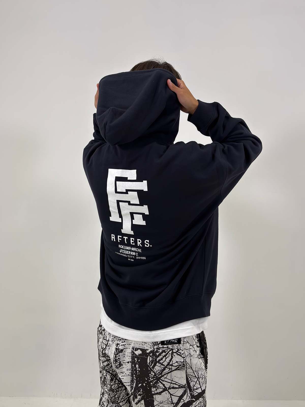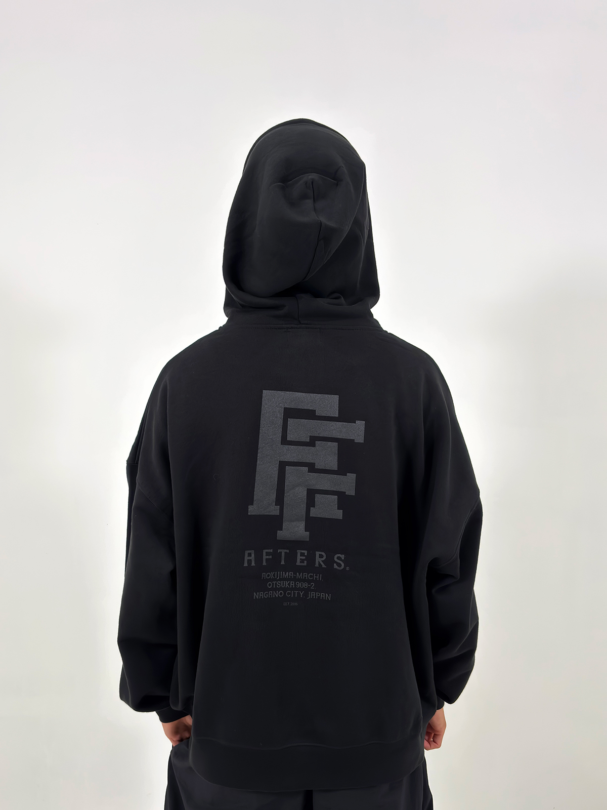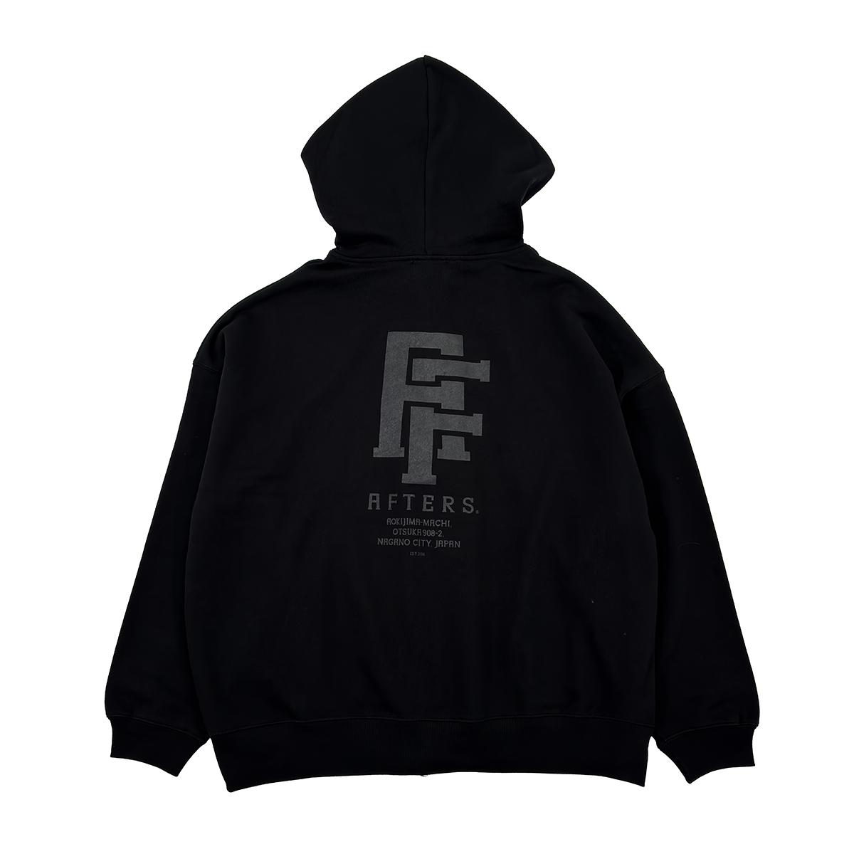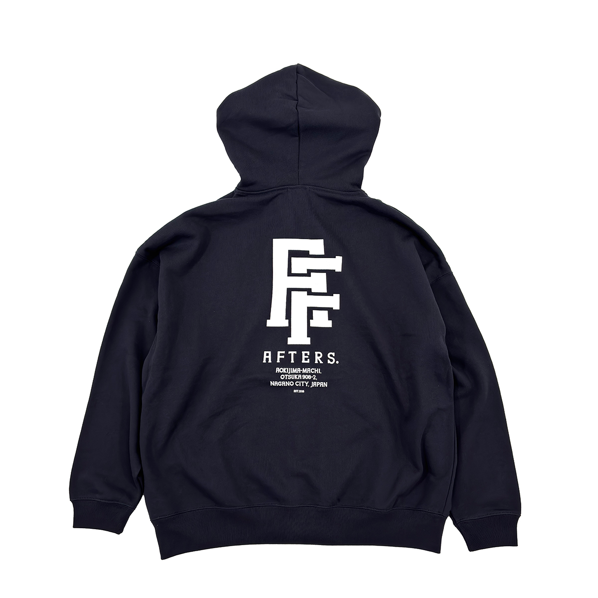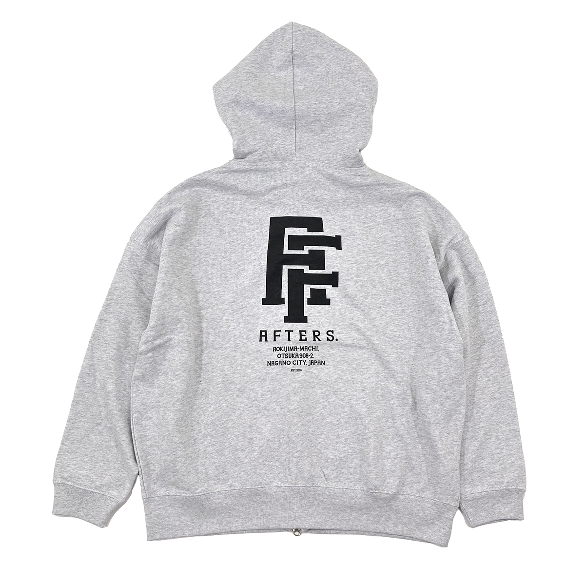10.0オンスの裏パイルジップフーディー。ビッグシルエット。ダブルジップ仕様。フロント、バックにシルクスクリーンプリント。左裾にAFTERSネーム。