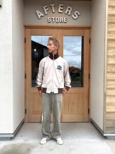 朝晩少し秋めいてきましたね。店頭でも長袖をそろそろ、という方が増えてきました。さっと羽織れるSOUVENIR LOGO ZIP HOODIE。ややワイド型でHINOKIとの相性も抜群!割と軽めな素材なので入りやすいと思いますのでいかがでしょうか?
