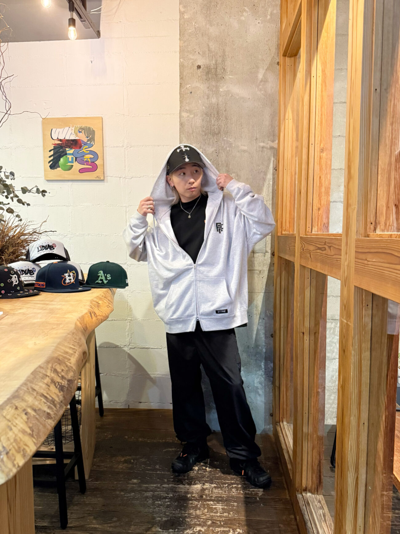 朝、夜が肌寒くなってきたので、生地が薄めでこの時期にはもってこいのSOUVENIR LOGO ZIP HOODIE