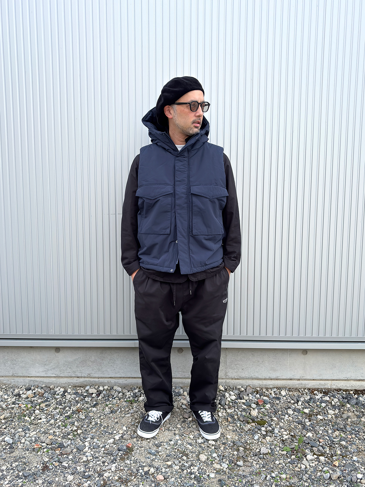 車の移動がメインでドアtoドアなら長野の冬でもこれでいいんじゃないでしょうか。ちなみにインナーに着たのはHINOKI 3B JACKET。デリケートなテーラードジャケットではないのでこんな着方も可能です。