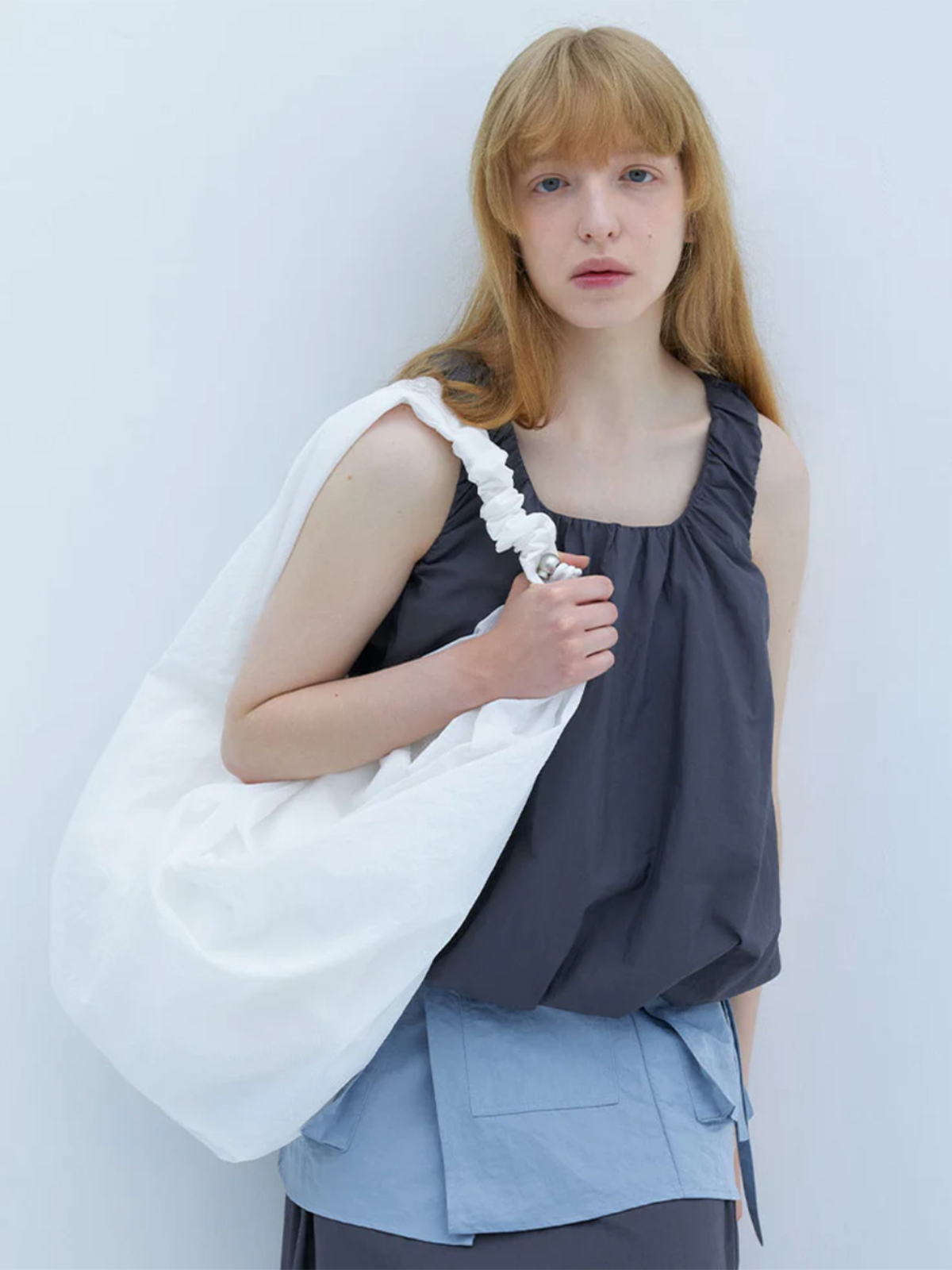 現在のコレクションでは、キャンバスバッグの軽さと実⽤性、レザーバッグのモダンでエレガントな表情を特徴とするデイリーファブリックバッグを紹介しています。