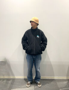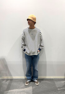 そんな人気のマフラーを使ったスタイリング。MIZUHIKI SWEATと合わせ、ユーロな雰囲気をイメージして組んでみました。
