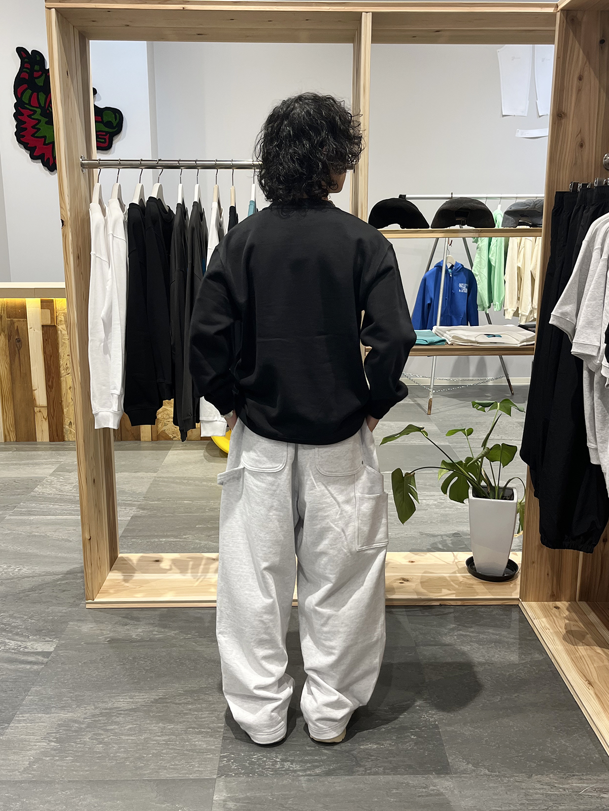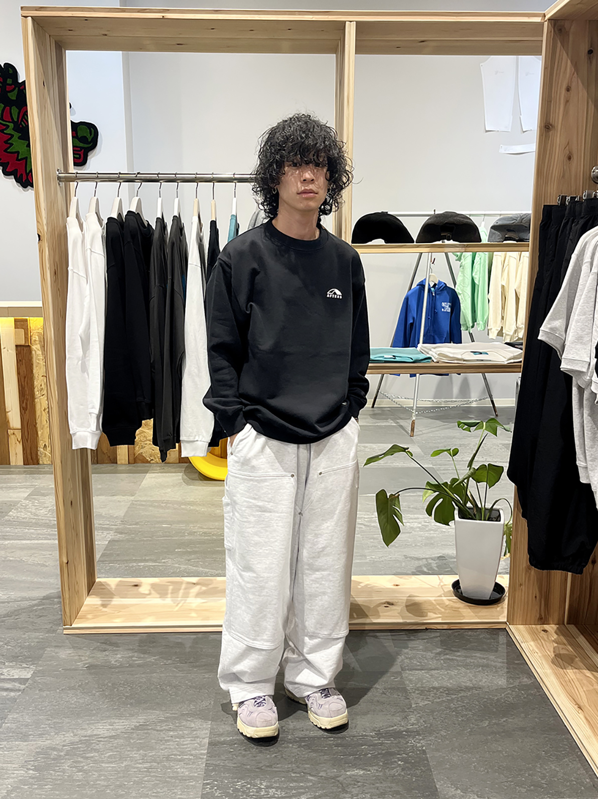 今日発売のSOUVENIR LOGO DOULE KNEE SWEAT PANTSを使ったスタイリングです。