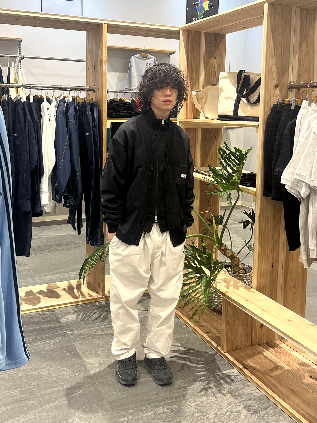 最近はトラックジャケットの上に何か羽織るのがハマってて、再入荷したカーディガンのインナーにFLAG TRACK JACKETを合わせたらとても良い感じでした!