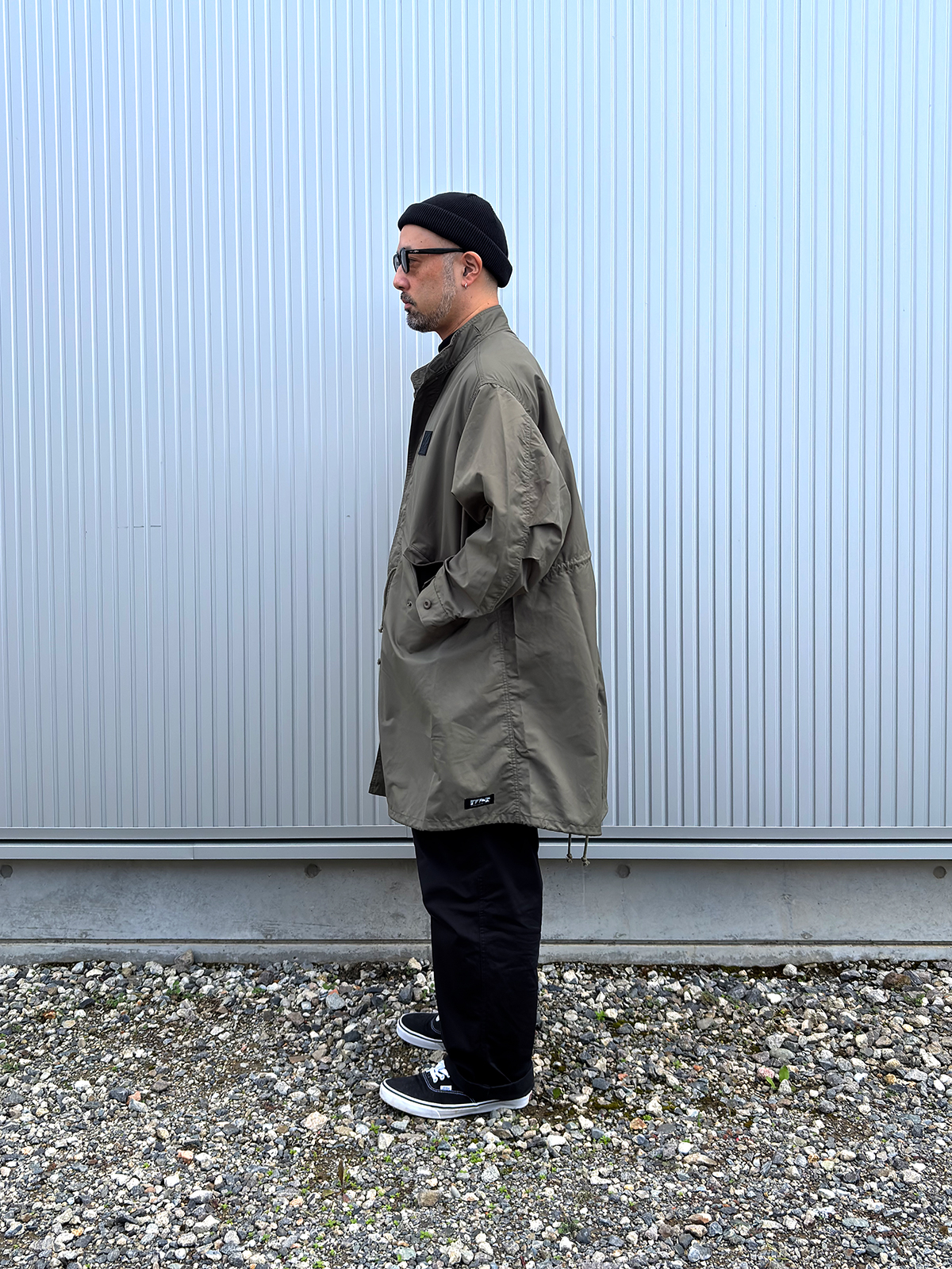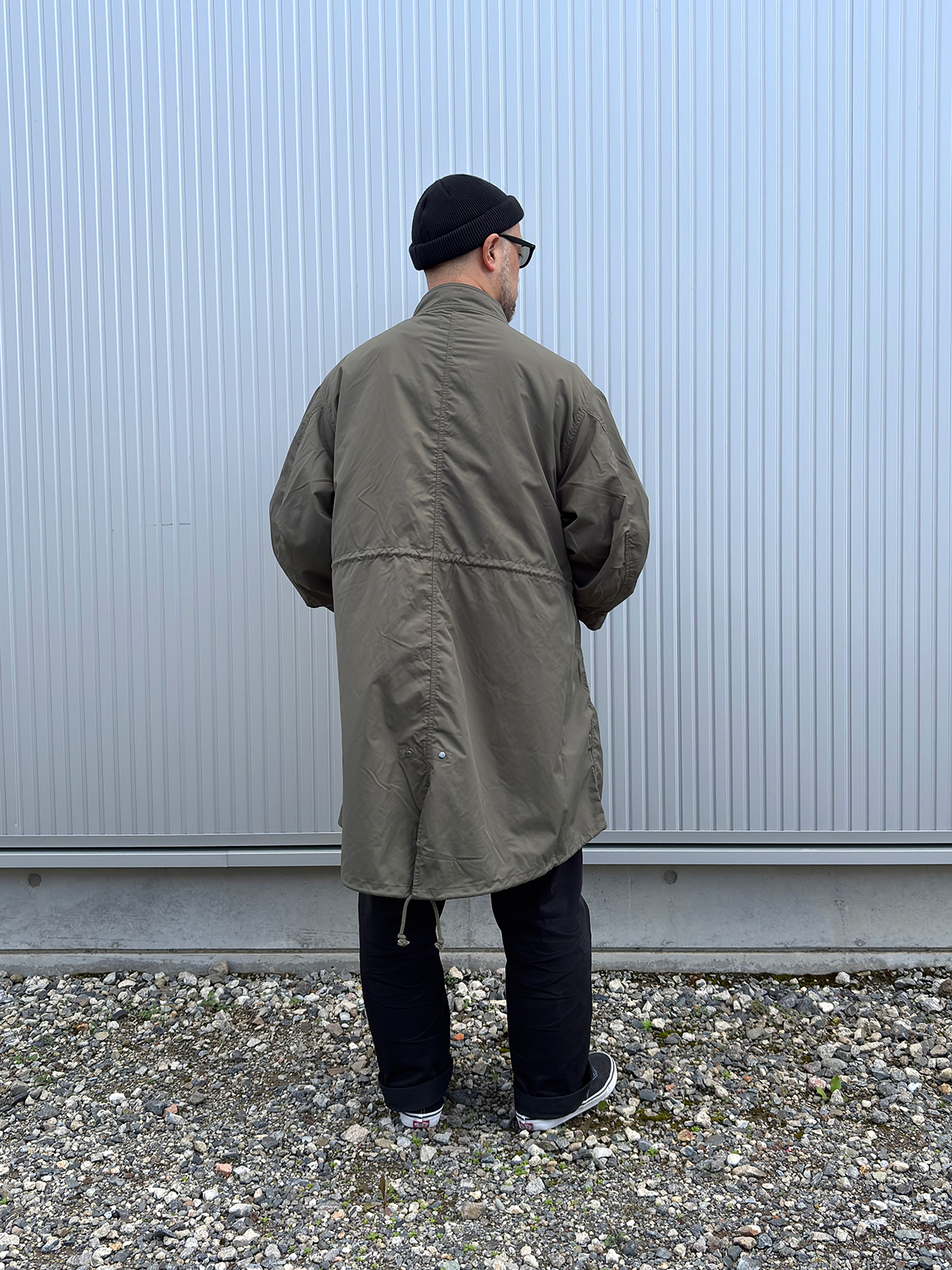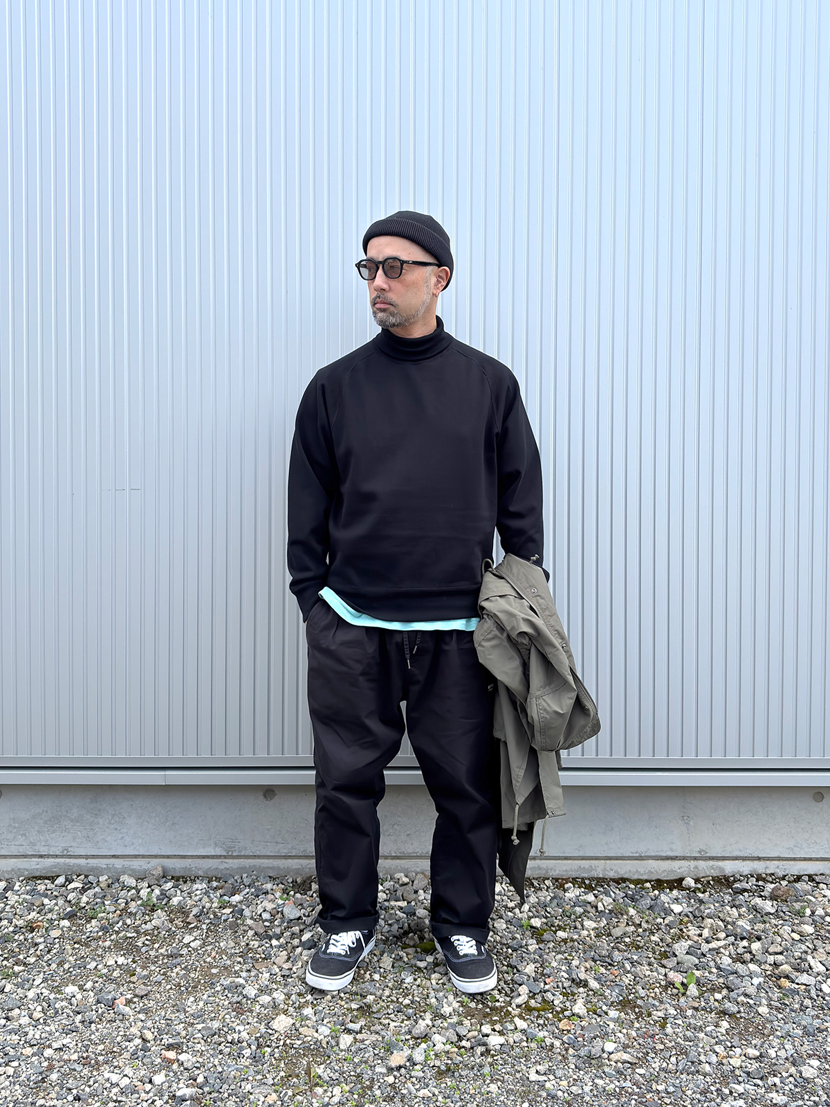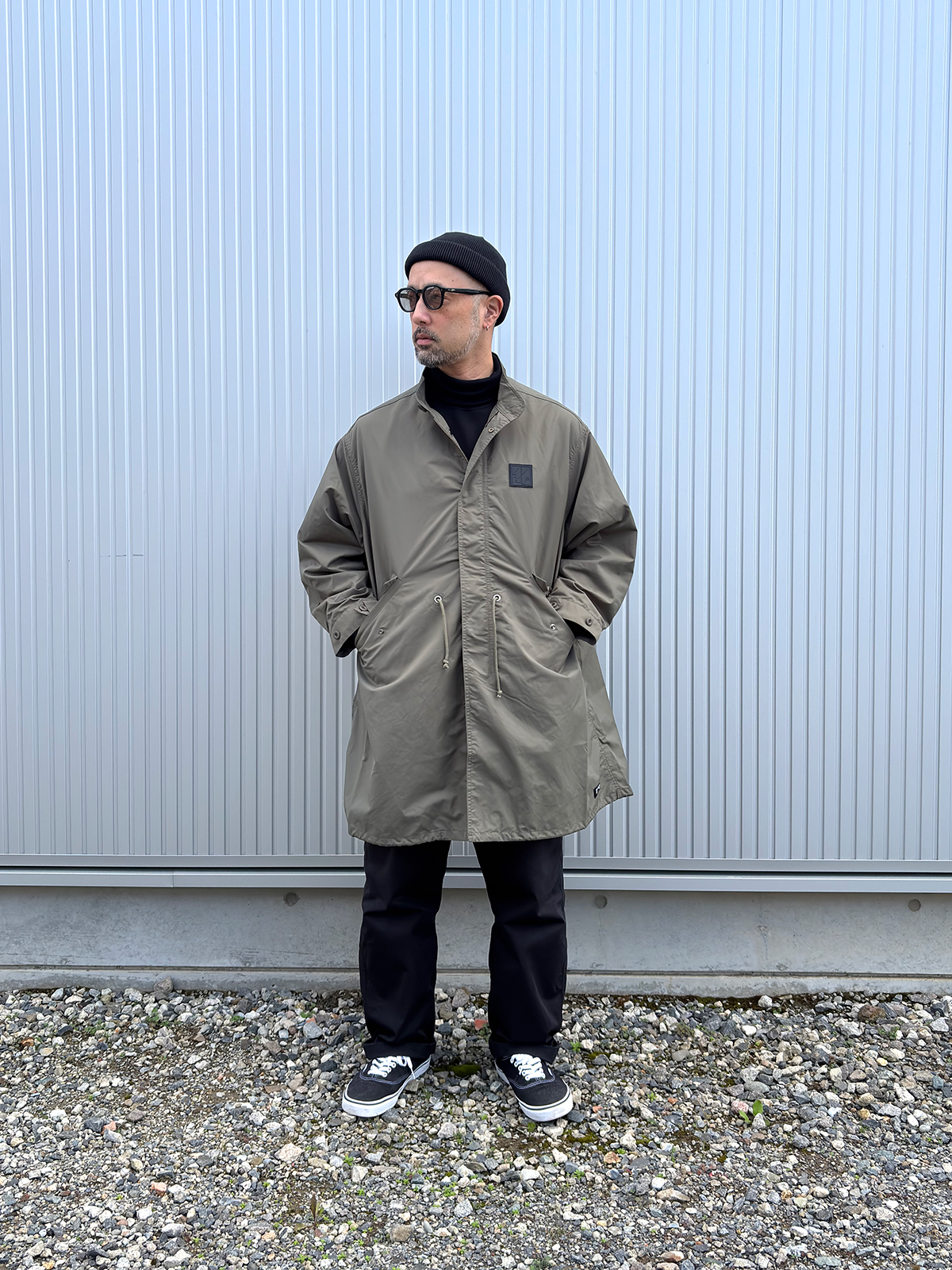 新作のフィッシュテールコートにMR.OLIVEのタートルで合わせました。