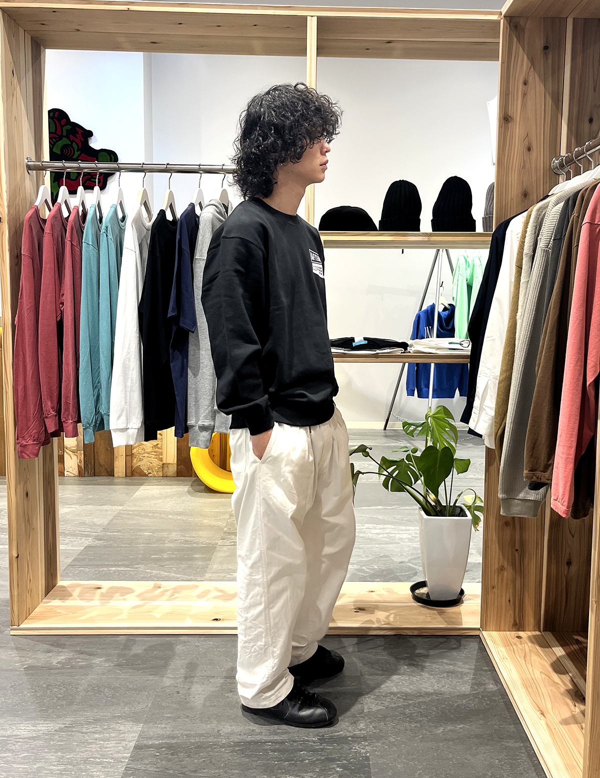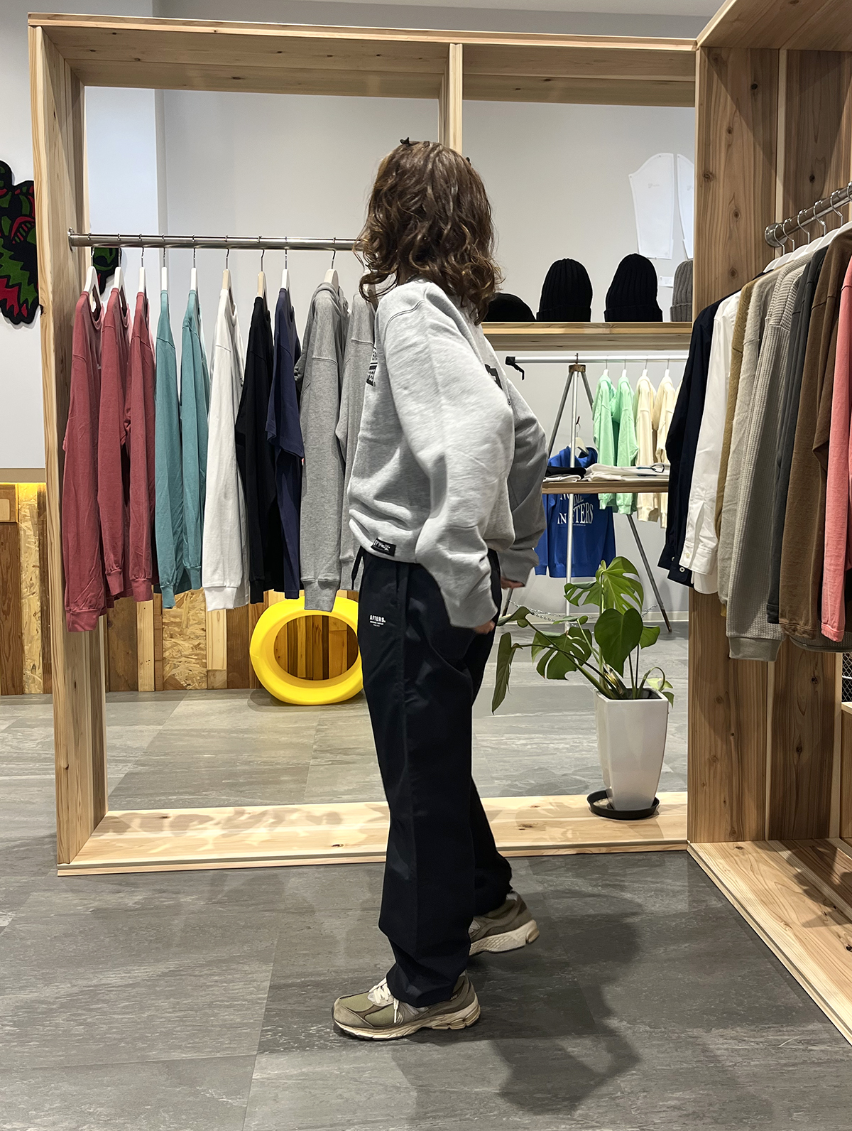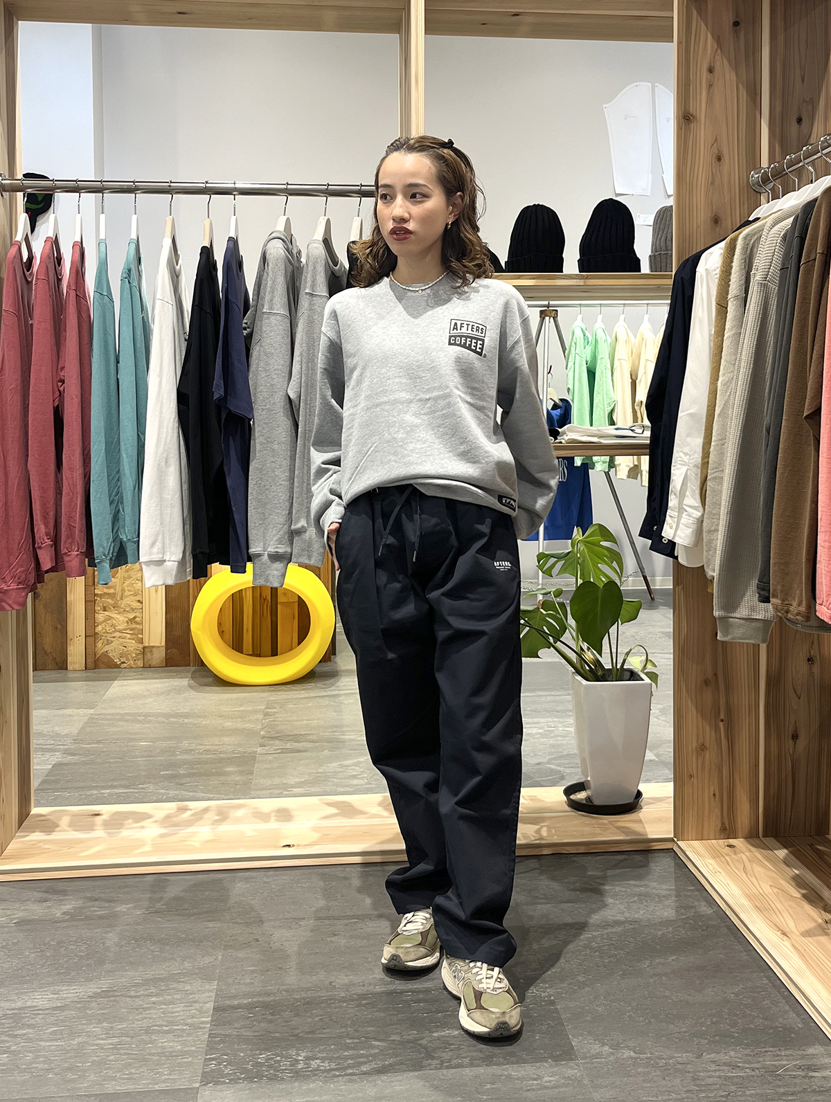 AC SWEATにHINOKI。どちらもカジュアルでメンズライクですが、男性にも女性にもオススメのスタイリングです。