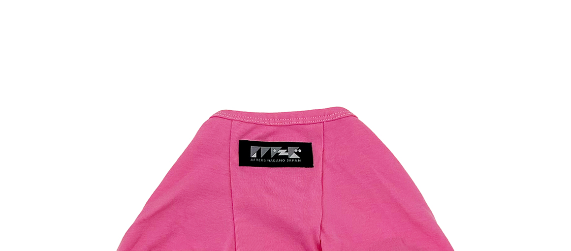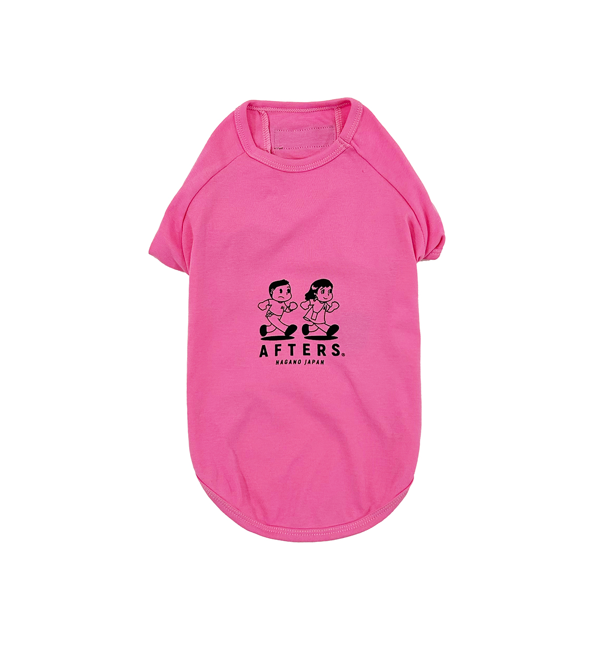AFTERS®︎の犬服。フロントにAFTERSネーム。バックにシルクスクリーンプリント。