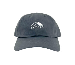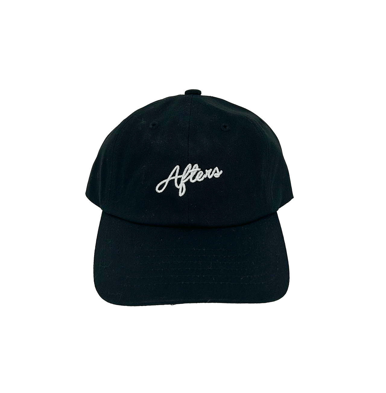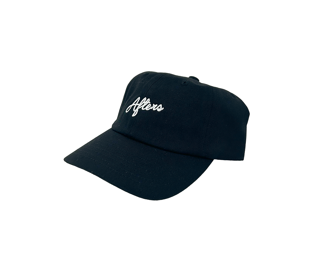 コットン6パネルキャップ。フロントにAFTERS筆記体刺繍。