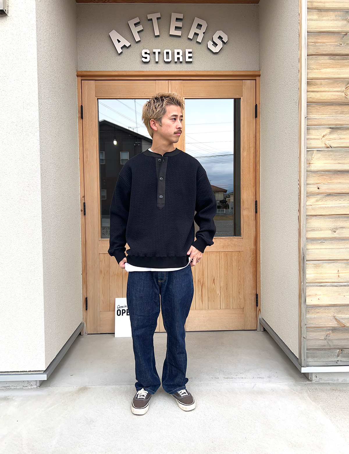 いいマッチです!個人的にはこちらの方が好きですね。少し色味が寂しいかなと思いベストを足しましたが、これもベストマッチです!少し白のレイヤードを入れるのもスタイリングとしていいかと思います!