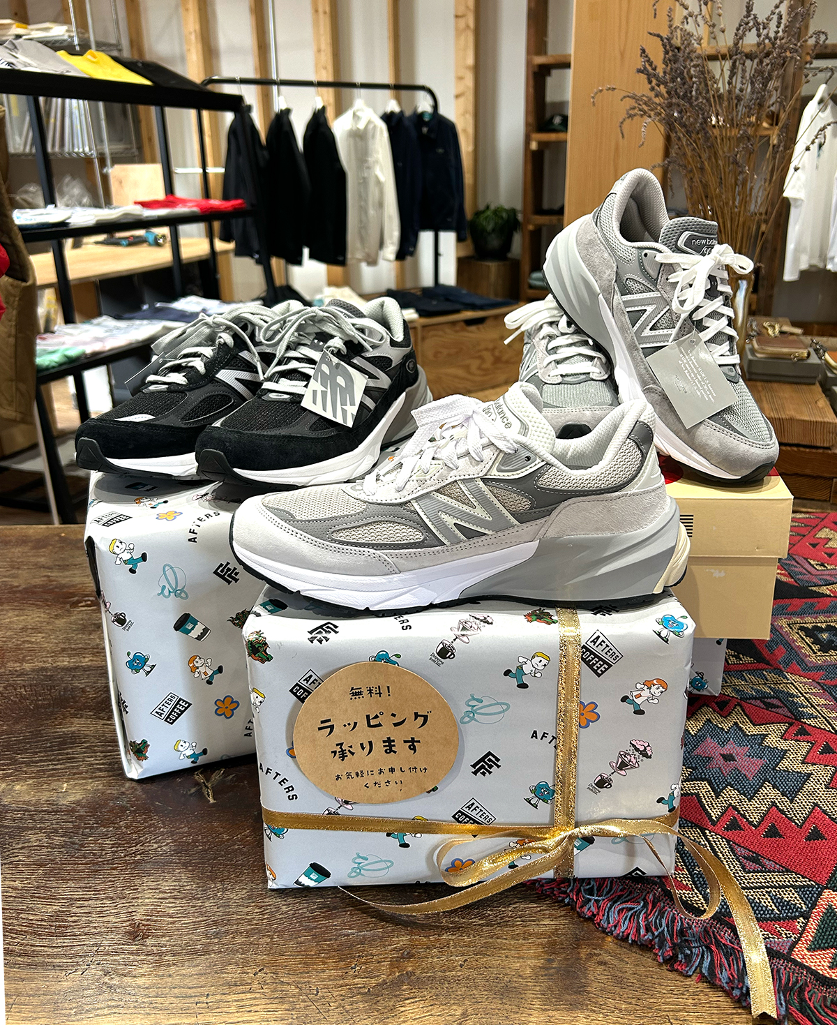 NEW BALANCE👟、AFTERSオリジナル、PALOSANT、CAP類など男女問わず贈りやすいアイテムを取り揃えています。