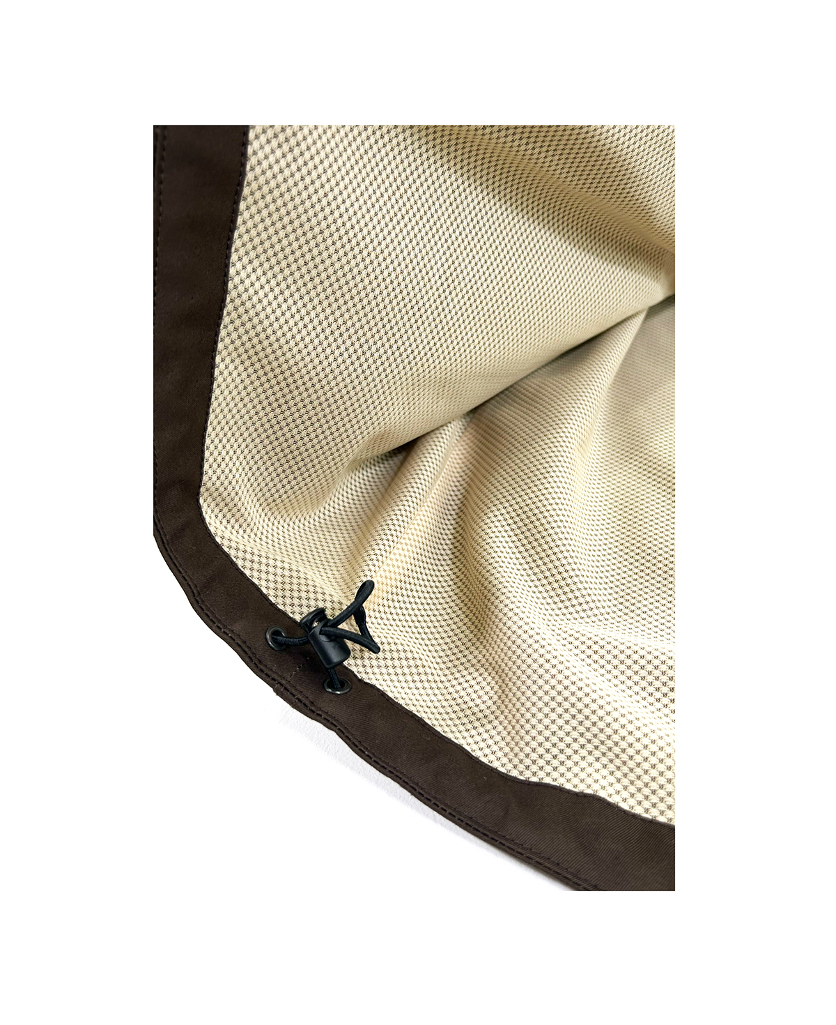 表地はコットン100%のベンタイル生地を使用。水の分子が通過できないほど高密度に織られた機能素材で、風雨や雪を防ぎ全天候に対応可能。裏地にはフィールドセンサーメッシュ素材を使用。毛細管現象を用いた機能素材で汗を効率的に吸収し蒸発させるため、表地のベンタイルとの組み合わせで高い透湿性を実現。天然素材と高機能素材をミックスした、ハイテクながら長年着込んでエイジングも楽しめるジャケットに仕上げました。