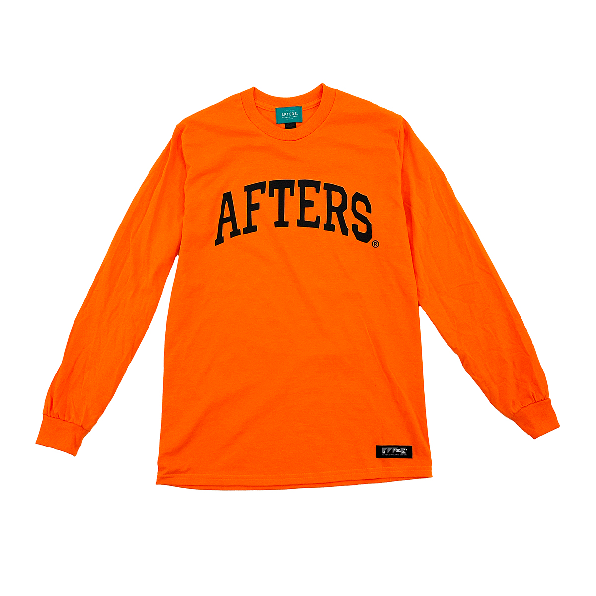 フロントにシルクスクリーンプリント、左裾にAFTERSネーム。