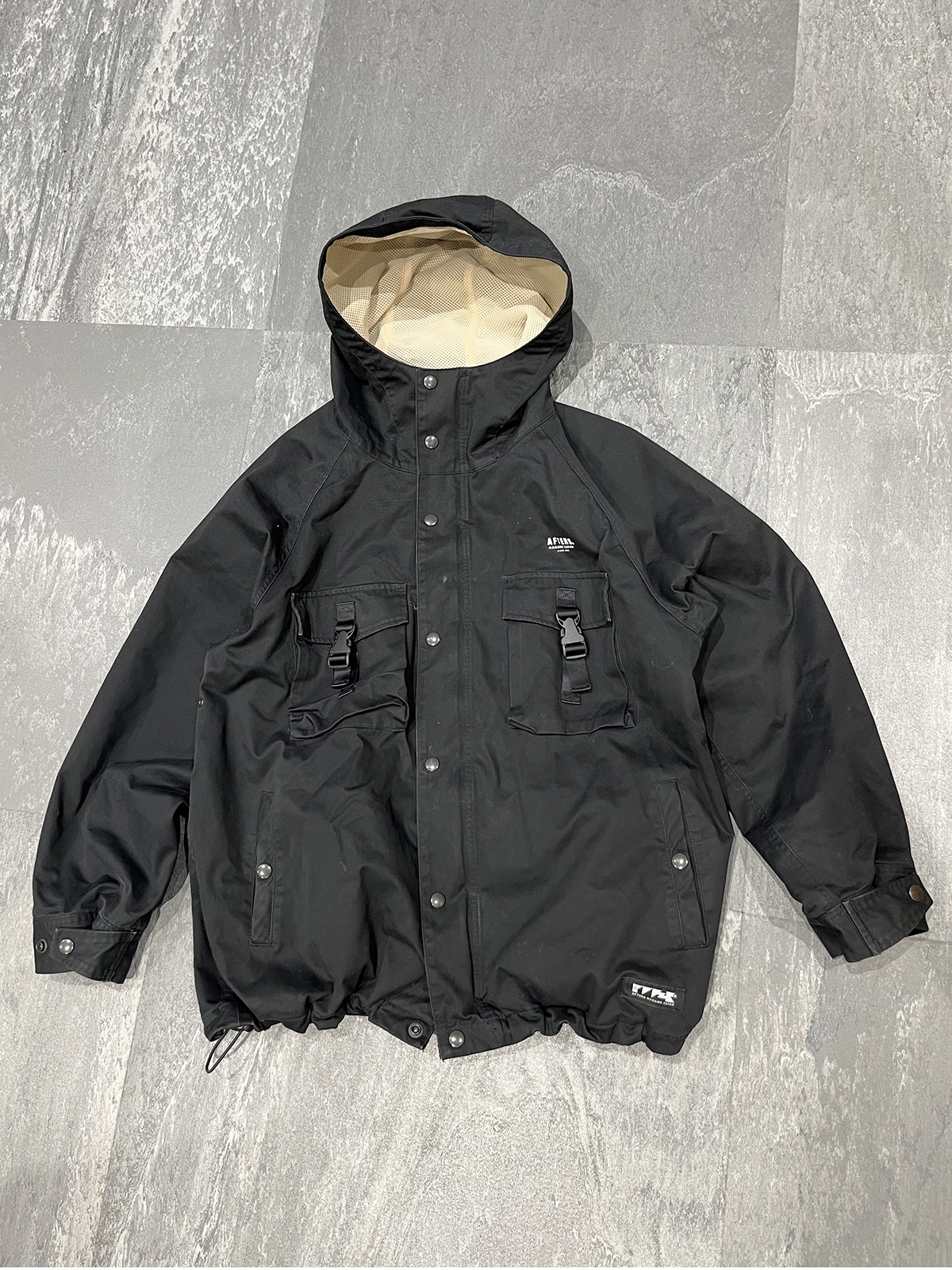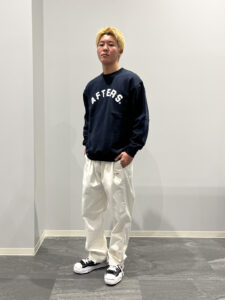 裾はドローコードが搭載されてますので、裾を絞ったり着用は様々ですが、僕は下を開けて着るのがカッコ良いと思うので、スタイルのような着方を普段からしてます!