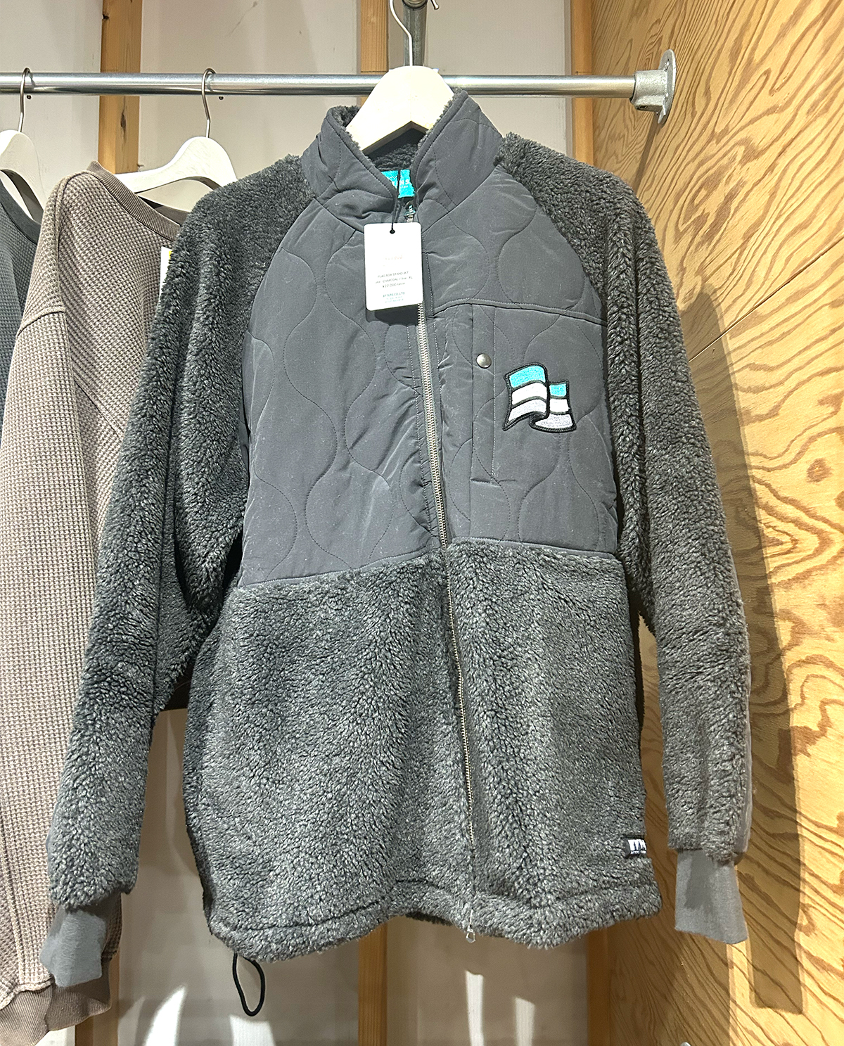 カラーは、チャコールで落ち着いた色味なので合わせやすくボアなので暖かさもありアウターが半額で買えるのは、今だけなのでお早めにです!