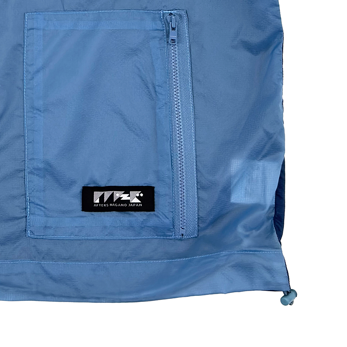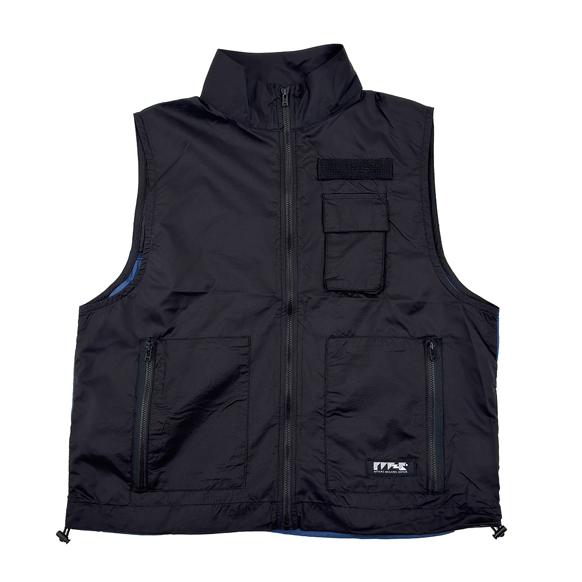 シアーナイロン素材を使用したミリタリーベスト。裾のドローコードで調節可能。フロントにAFTSワッペン。AFTERSネーム。