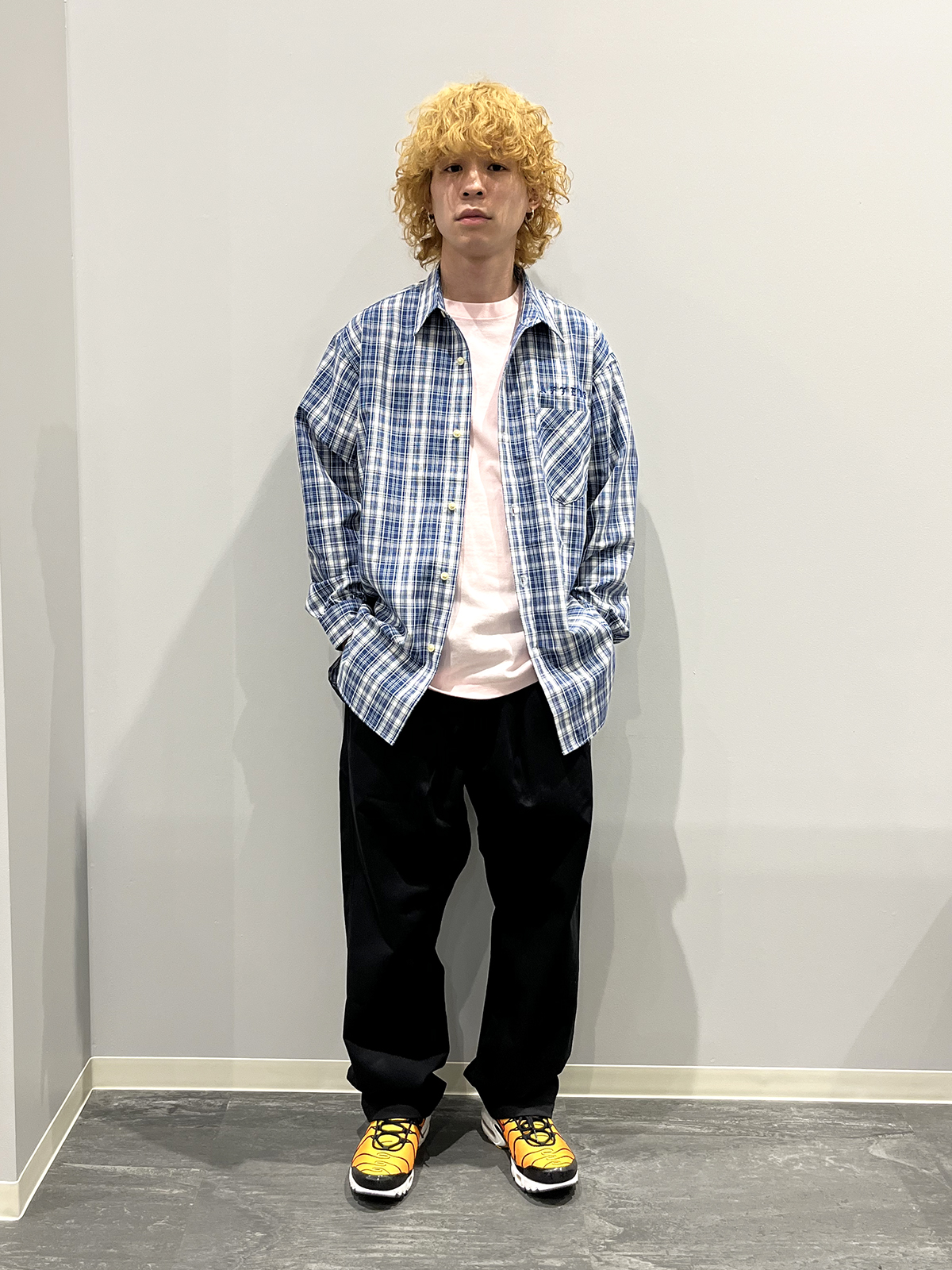 こちらも新作OLD LOGO PLAID SHIRTに須坂店のみのカラー、AC TEE PINKの組み合わせ。
