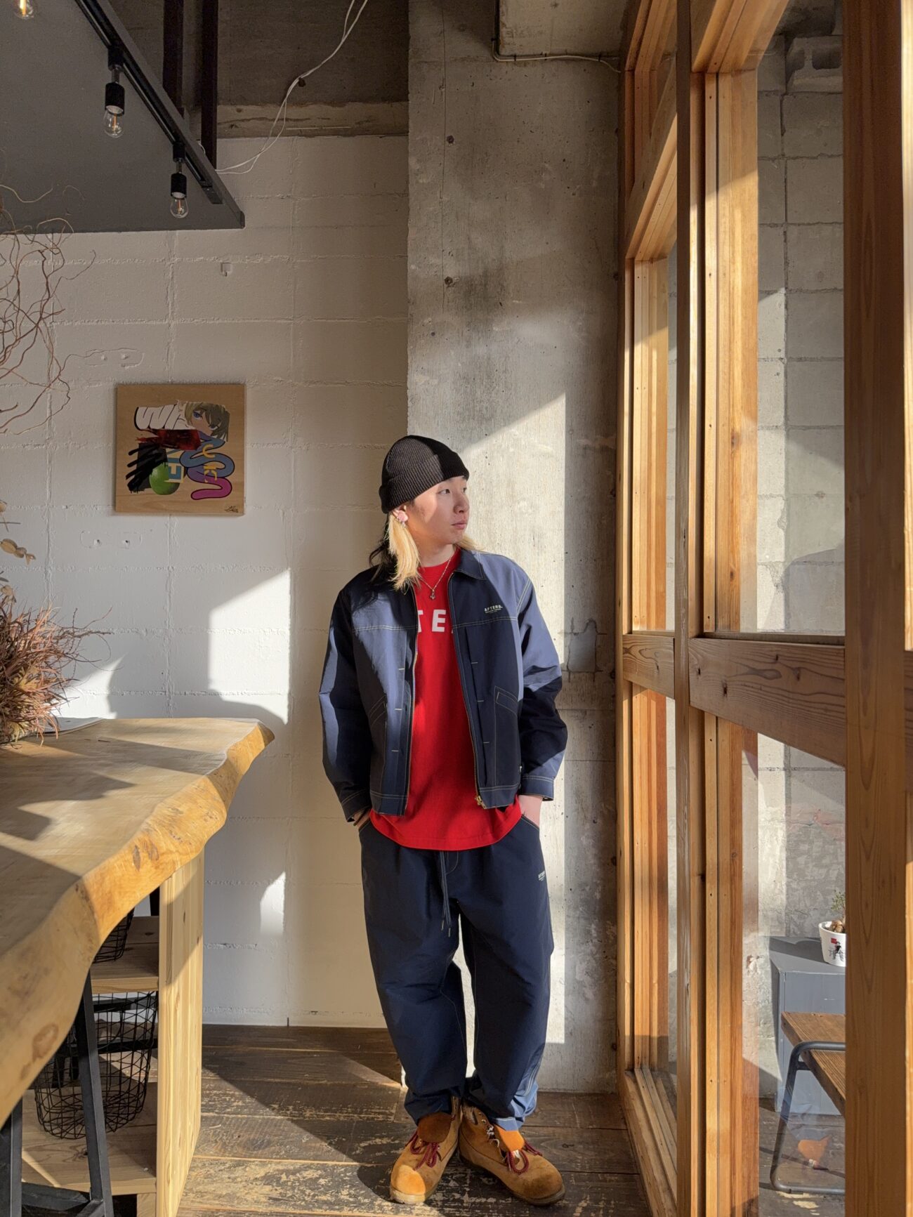 NAVYとREDの組み合わせで暗くなりすぎずセットアップを着こなせます!