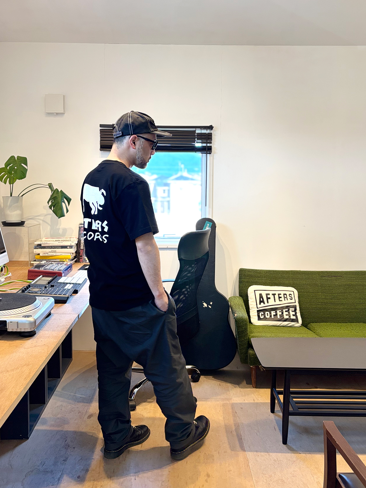 AFTERS COFFEのロンTを着て、実際の仕事風景の一コマを切り取ってみました!