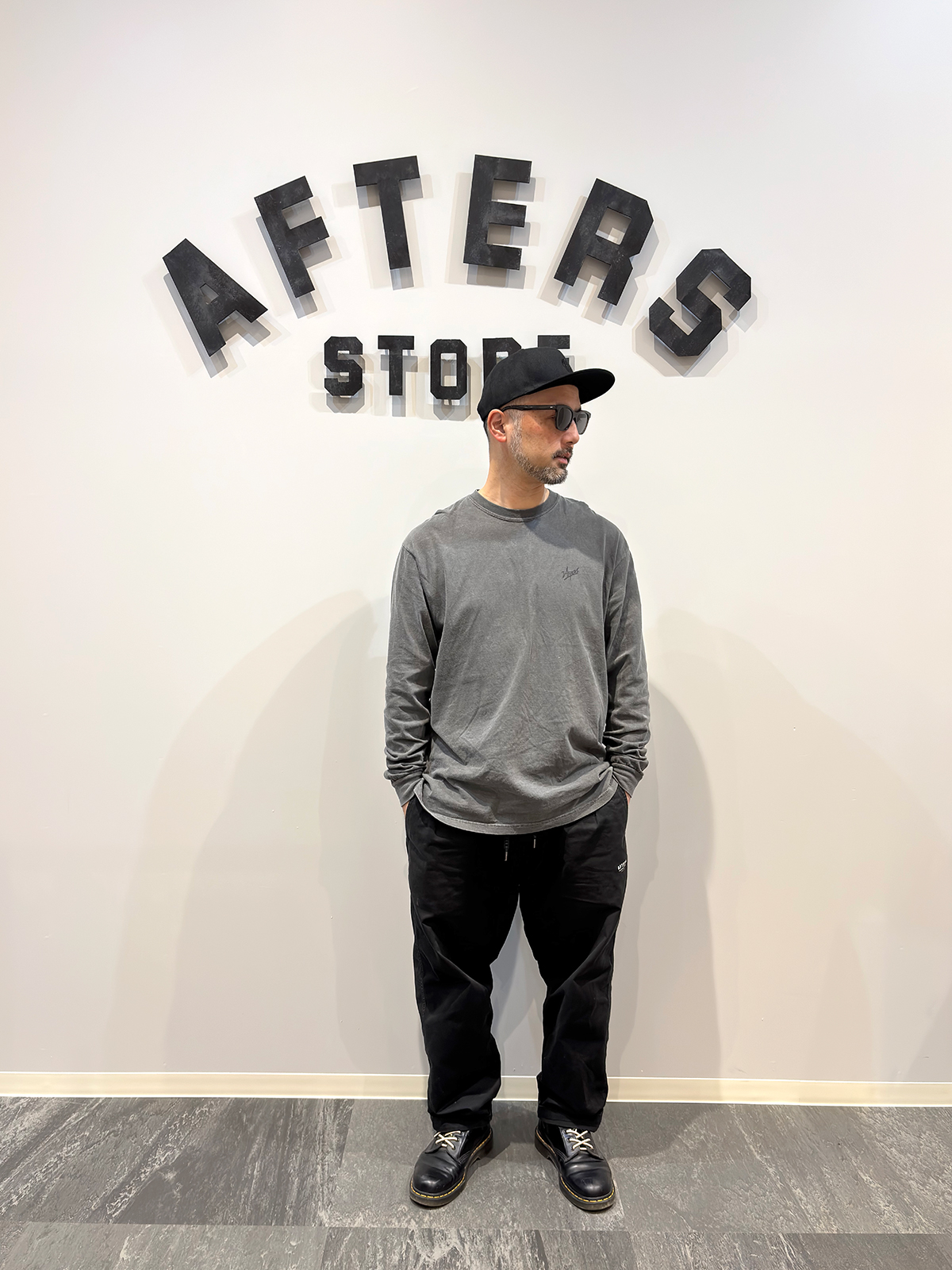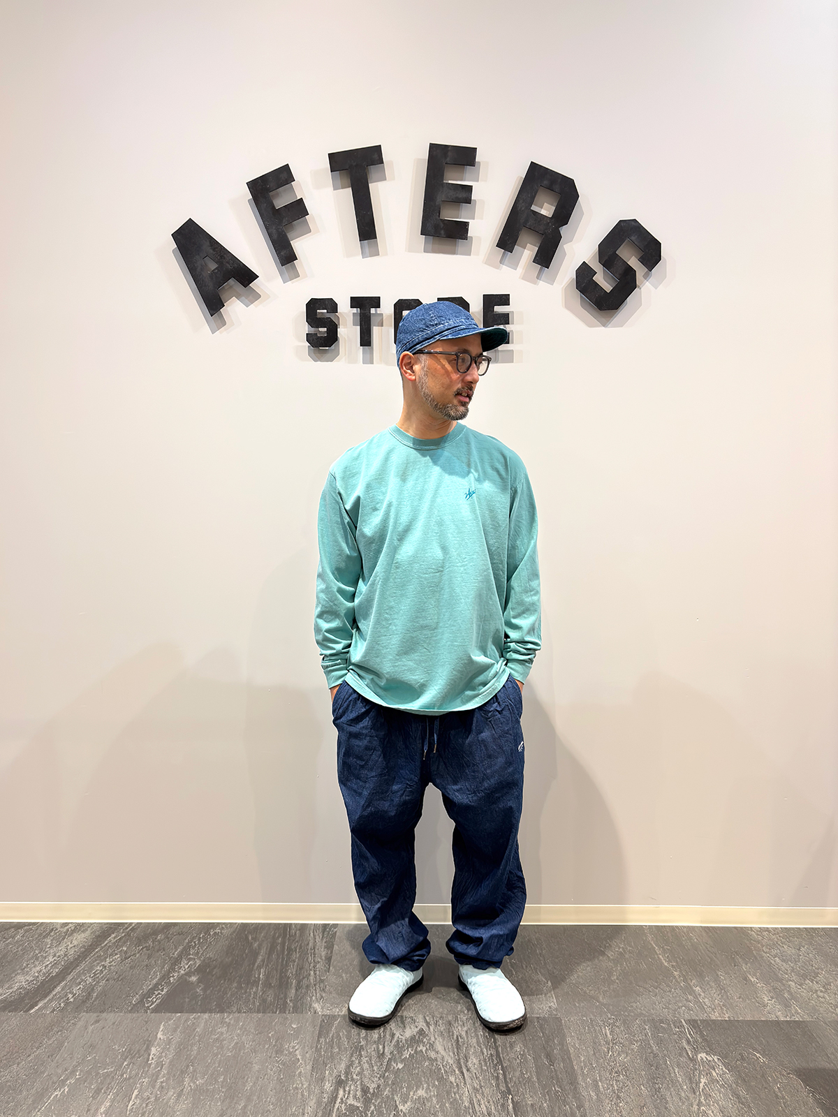 特にHINOKI EASY PANTSとセットで!という方が多かった。なんでしょう、なんかちょうど良いですよね。このゴワッとしたイージーパンツに1stのロンT。プリントも同色系なので統一感がありお気に入りのCAPにスニーカーでスタイル完成。