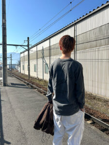 中坊の頃、自分で考えた格好で出かけたくてウズウズして、夜中にLevi’sとREDWINGとヴィンテージレプリカスウェットにジャケット羽織って、雪が積もる中その辺の公園に歩いて行く。彼女も寝てるし、つまんないし、好きな服着て自販機で缶コーヒーとか買ってベンチに座って飲んで帰るだけ。気温はマイナス。でもそれだけ着るのなら出かけないといけなかったんですよ。