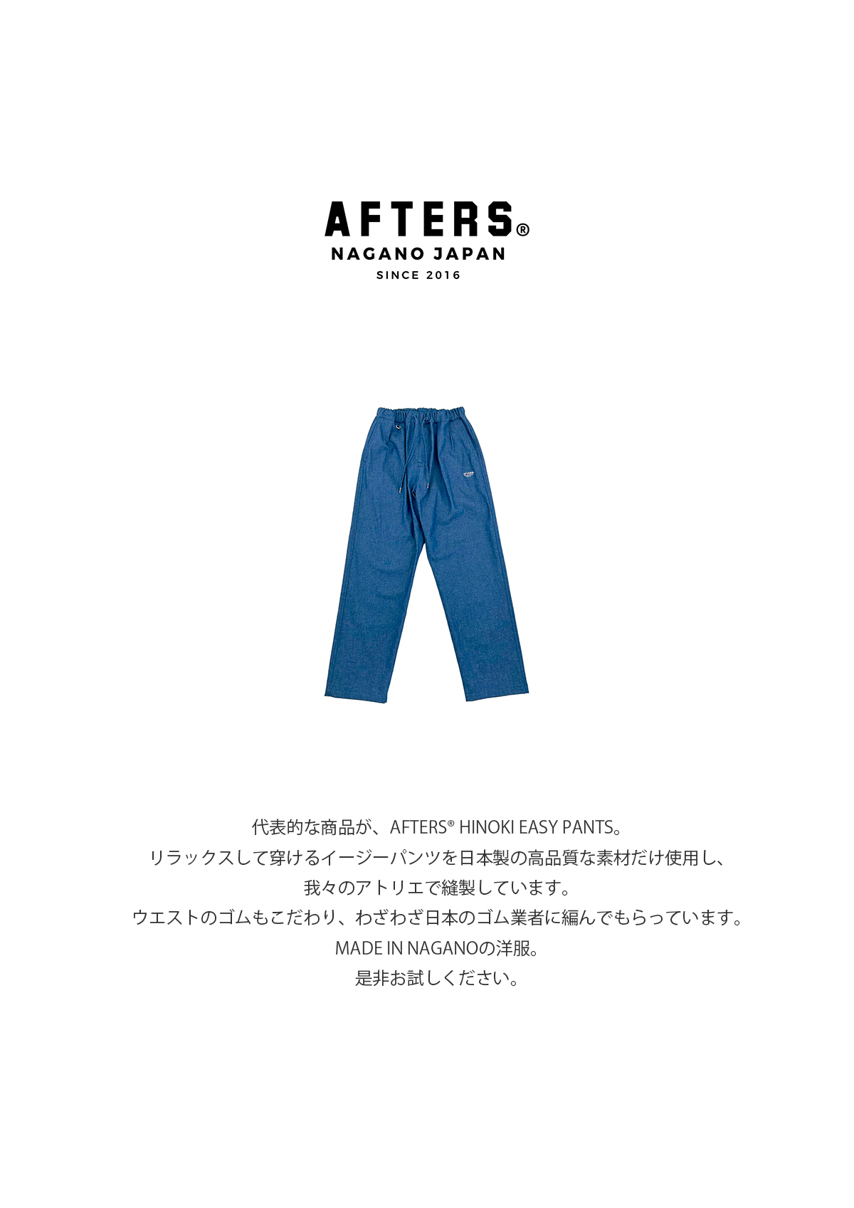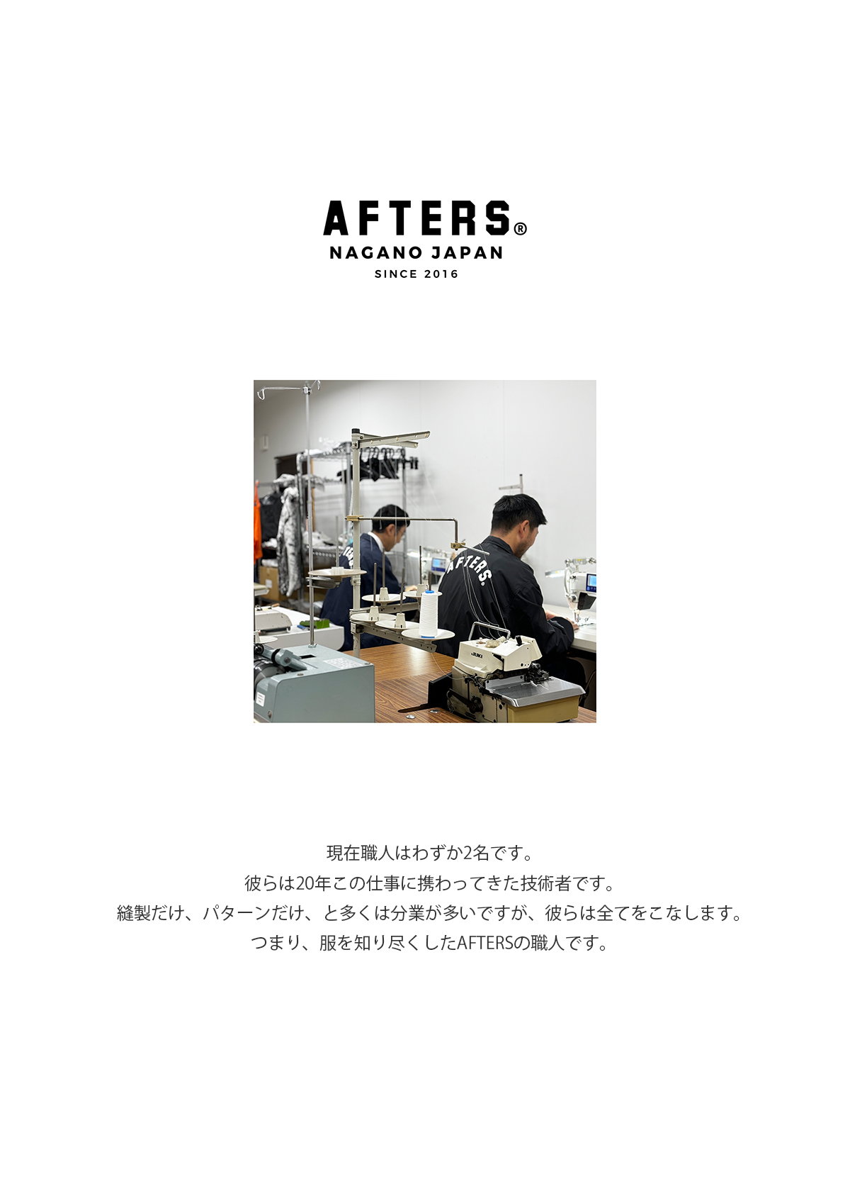 FEATURE -15(AFTERS®︎ MADE IN NAGANO) 投稿日 2026年2月24日 著者 RYO MIYATSU カテゴリー RYO MIYATSU AFTERS®︎ この記事を書いた人 RYO MIYATSU 宮津 亮【株式会社AFTERS代表】中野市出身・在住。2000年より長野市の有限会社World Wideにてメンズ、レディースセレクトショップに勤務。2016年11月に独立、AFTERS STOREを開業。ショップの運営、オリジナルブランドAFTERS®️のディレクションを手掛ける。 記事一覧 Facebook Instagram YouTube