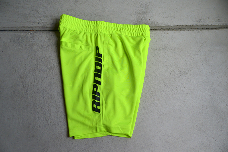 RIPNDIPのサッカーショーツ。ビビッドな蛍光イエロー。合わせんならもちろん黒でしょうね。他は真っ黒でこれ!いいんじゃないでしょうか。